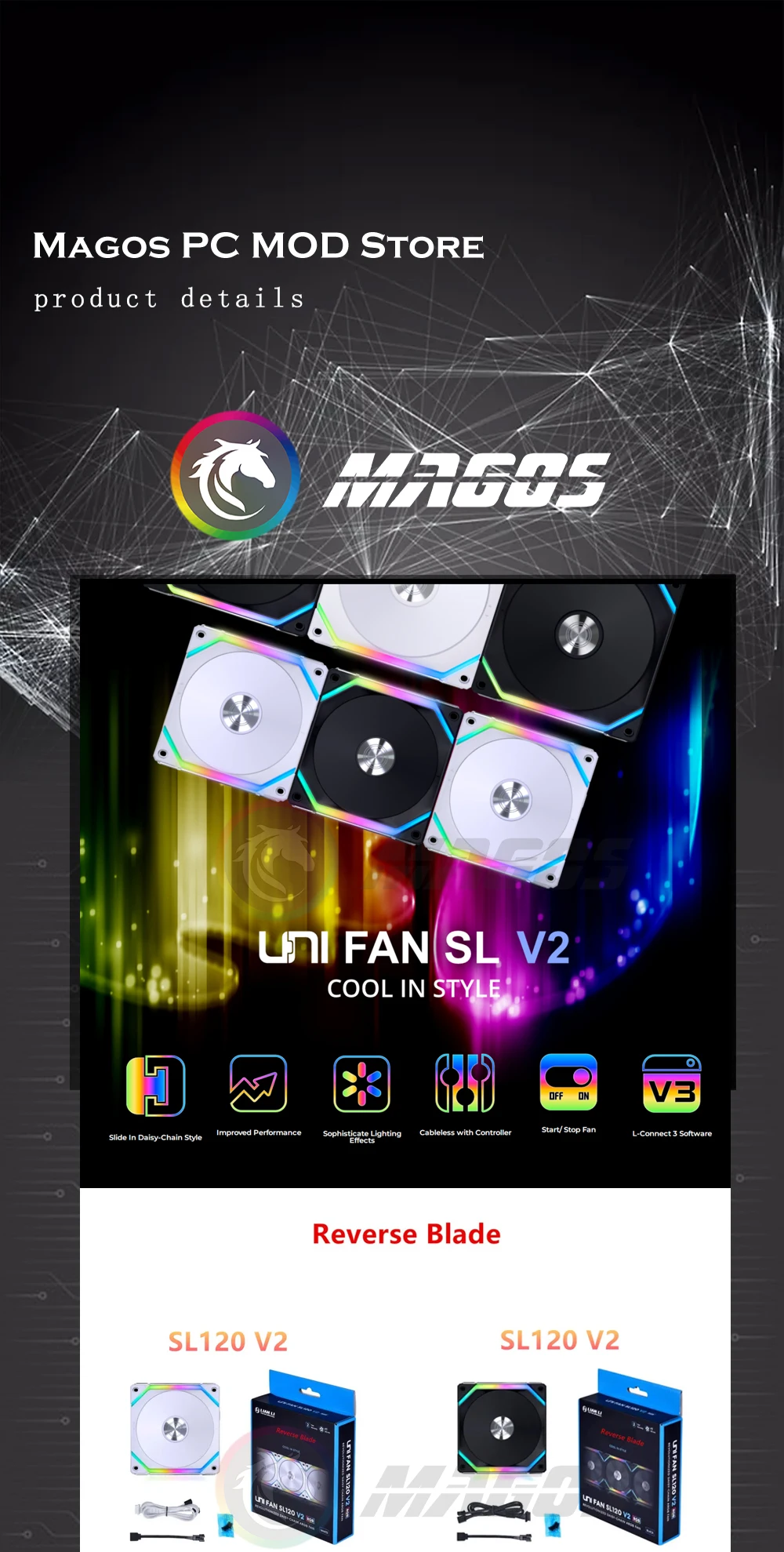 Comprar Lian Li UNI FAN SL120 V2 Enfriador de caja de computadora, negro/blanco, hoja inversa sin cable L-Connect 3 - Paquete único,
