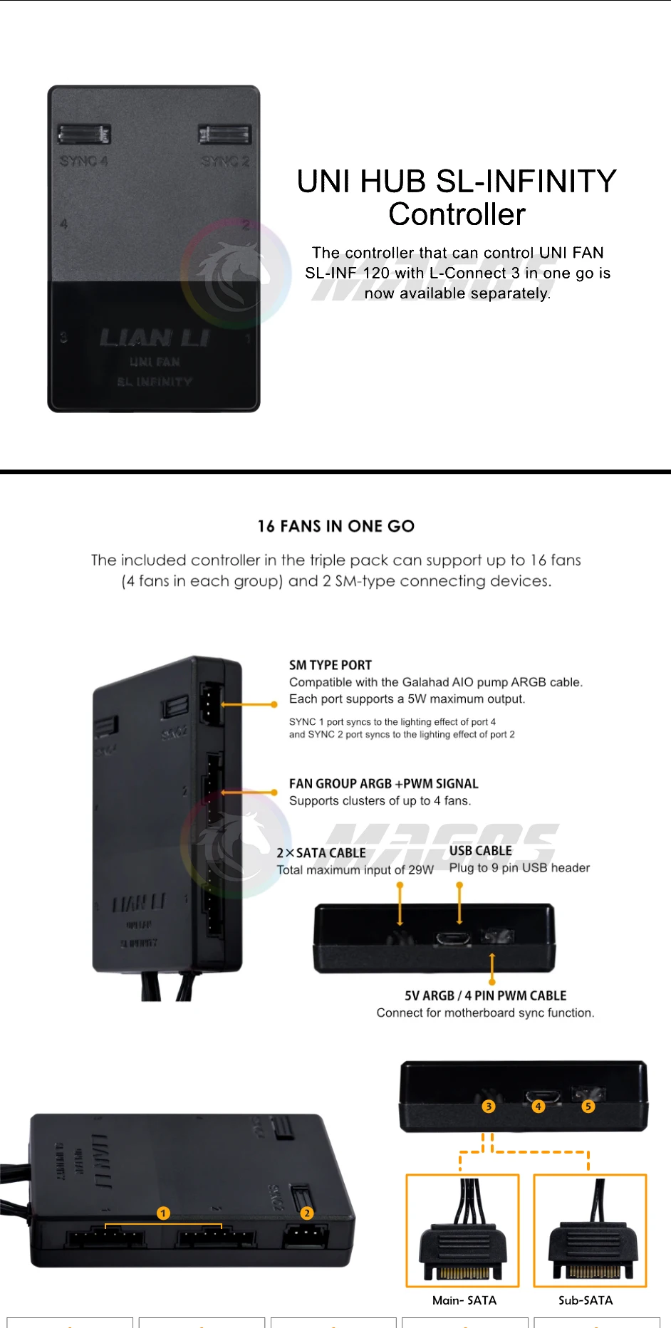 Comprar Lian Li UNI HUB para controlador de ventiladores SL-INF 120 140, compatible con grupos L-Connect 3 4X 16 ventiladores máximos.