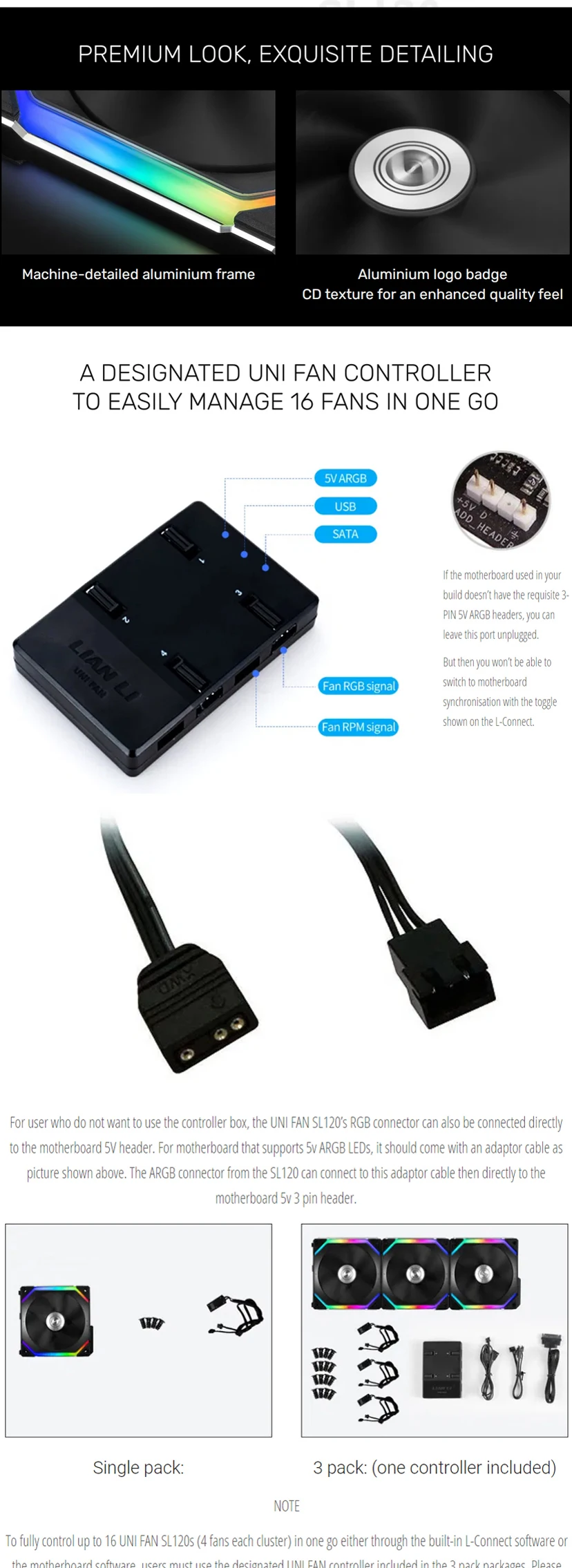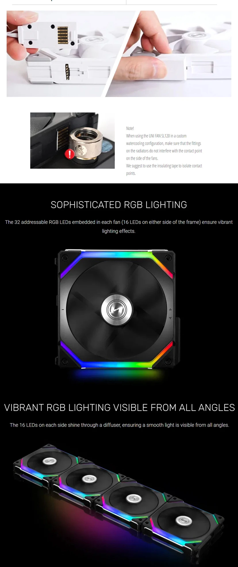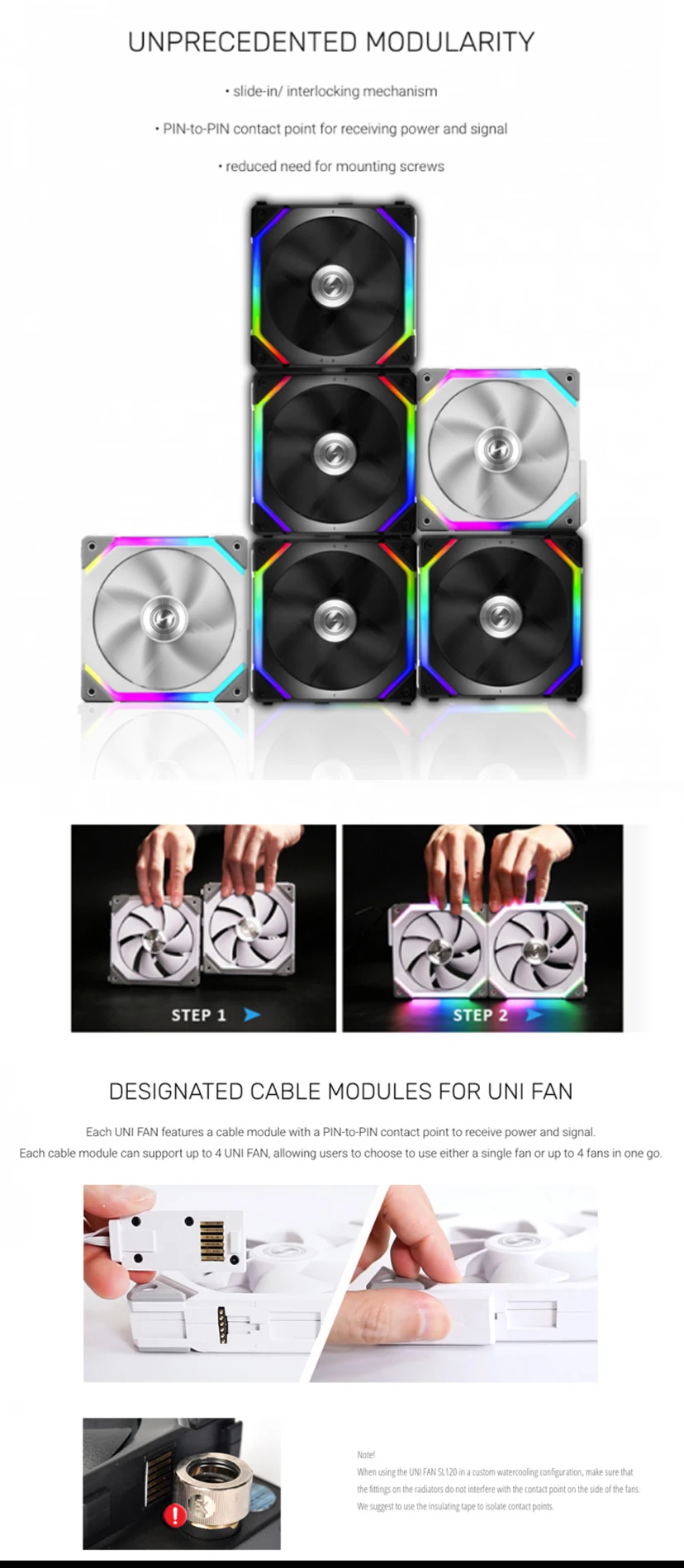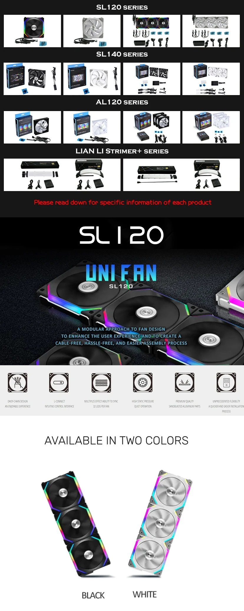 LIANLI UNI FAN SL 120 RGB MOD HUB Kit , 120mm Radiador Daisy Chain Ventilador sin cable, Software Smart PWM Control A-RGB