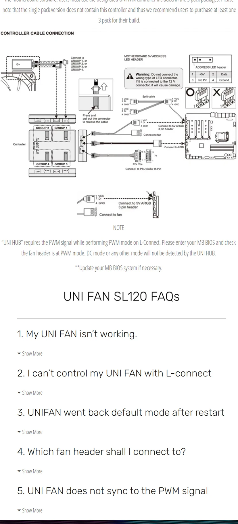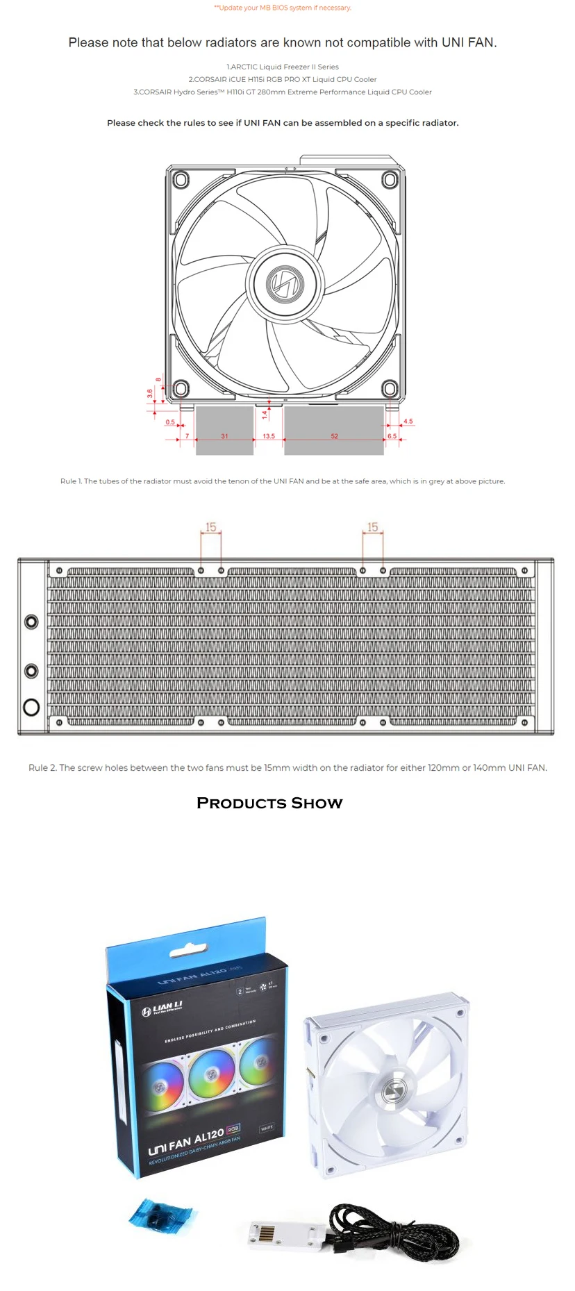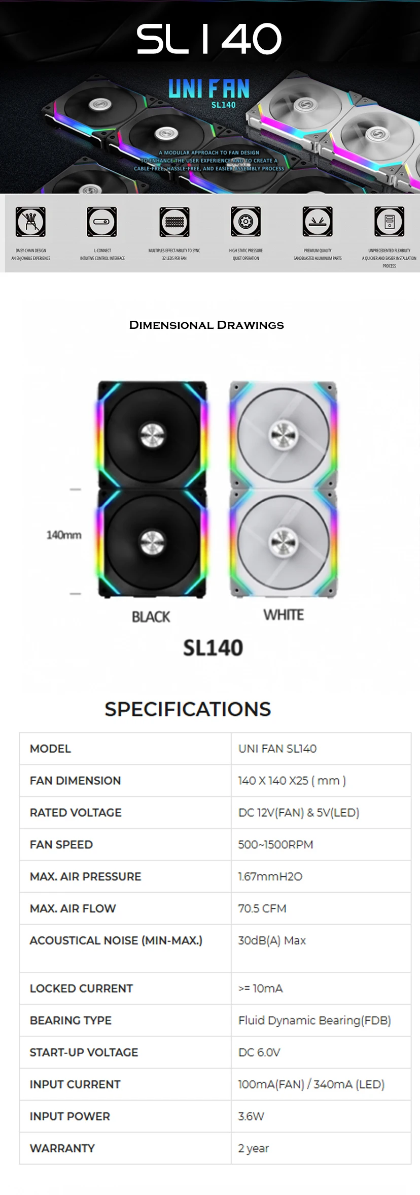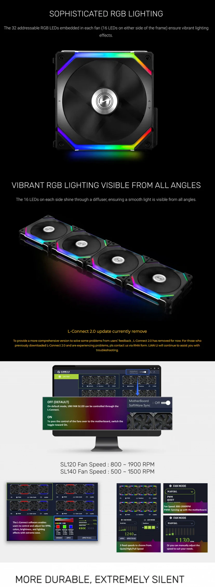 LIANLI UNI FAN SL 120 RGB MOD HUB Kit , 120mm Radiador Daisy Chain Ventilador sin cable, Software Smart PWM Control A-RGB