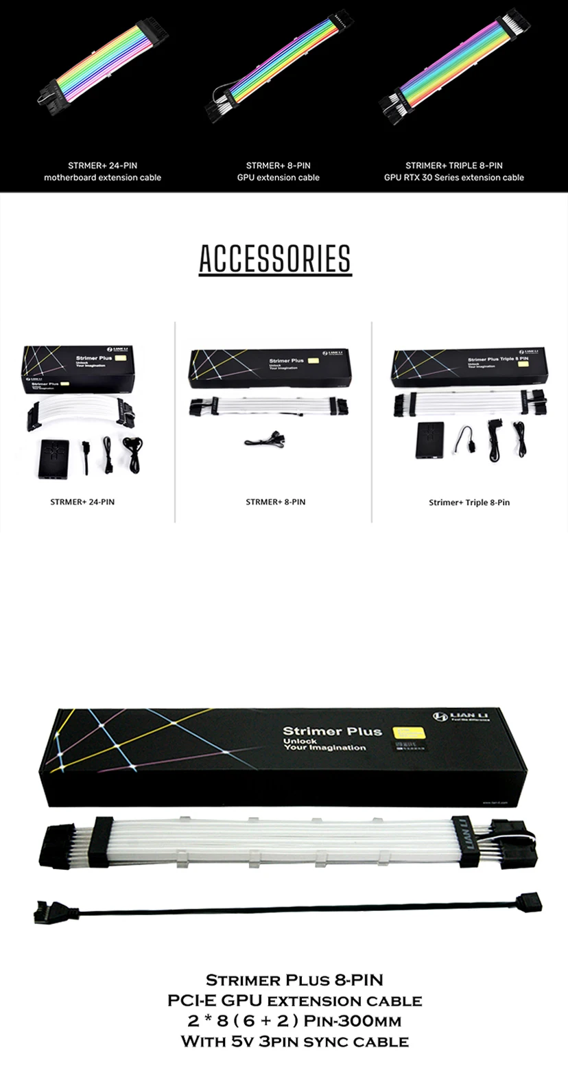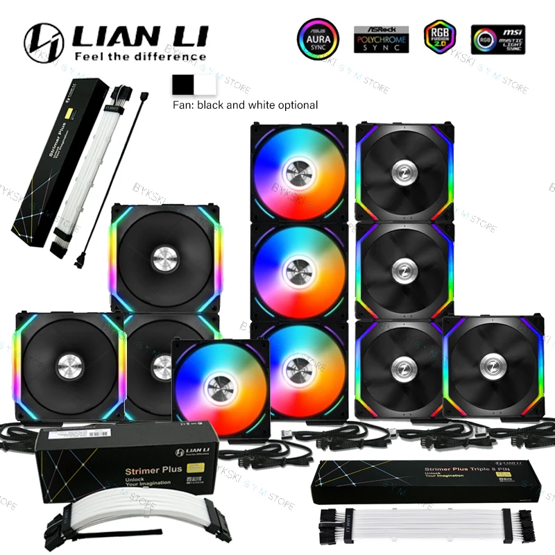 Comprar LIAN LI UNI-ventilador Original RGB + LIAN LI Strimer Plus V2, GPU doble/Triple, 8 pines (6 + 2 pines), Kit de Cable PSU, Software de Control PWM, 12CM/14CM