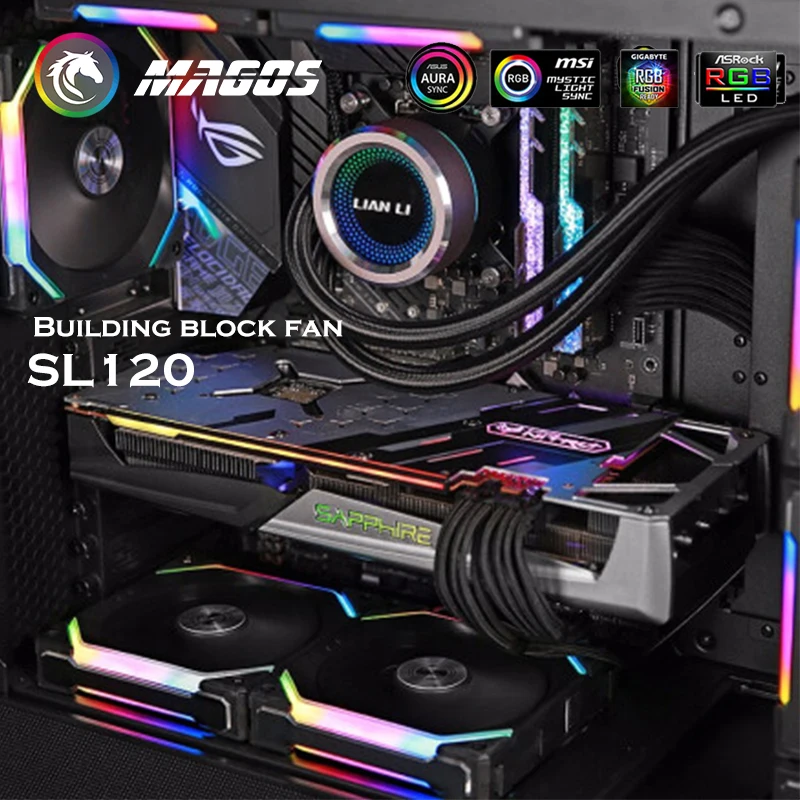 Comprar LIAN LI UNI-ventilador SL120, AL120, SL140, 120/140MM, RGB, Cable Modular, Software libre, Control inteligente PWM, M/B, 5V, ARGB, negro/blanco