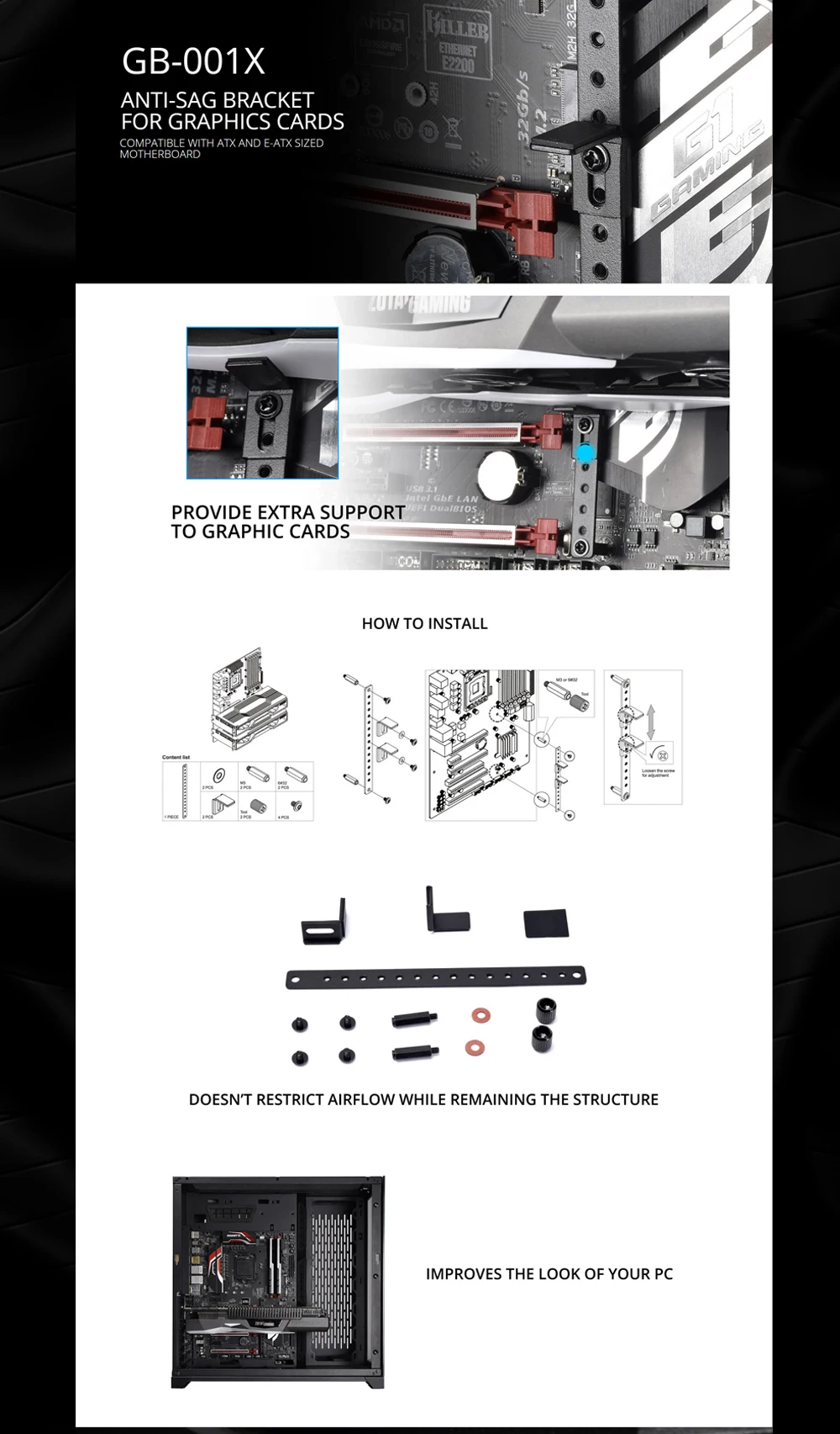 Comprar LIANLI-Soporte antisag GPU para tarjeta gráfica, placa base ATX y E-ATX, tarjeta de vídeo, accesorios para PC, GB-001