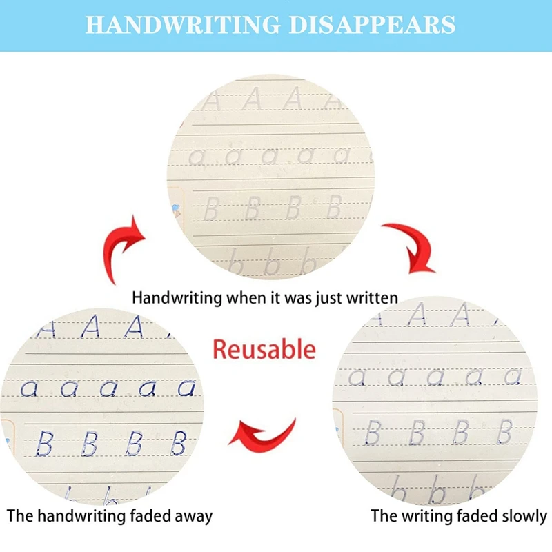 [Reusable Function]:Magic Copybook for Kids the handwriting will disappear within 10 minutes after writing, so the copybook can be repeatedly use for a long time, help kids write beautiful English words and numbers.