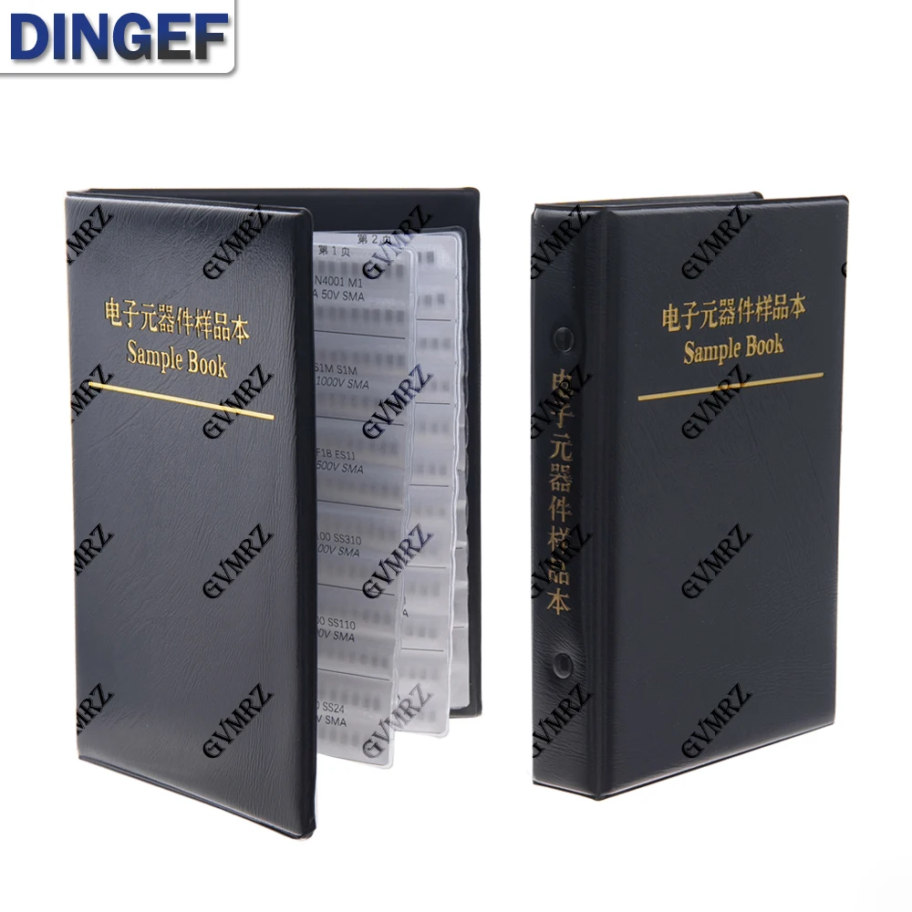 Libro de muestras de diodo rectificador de 24 valores Kit surtido SMD SMA Diodos Schottky de 33 valores M1 M4 M7 SS12 SS14 SS16 SS24