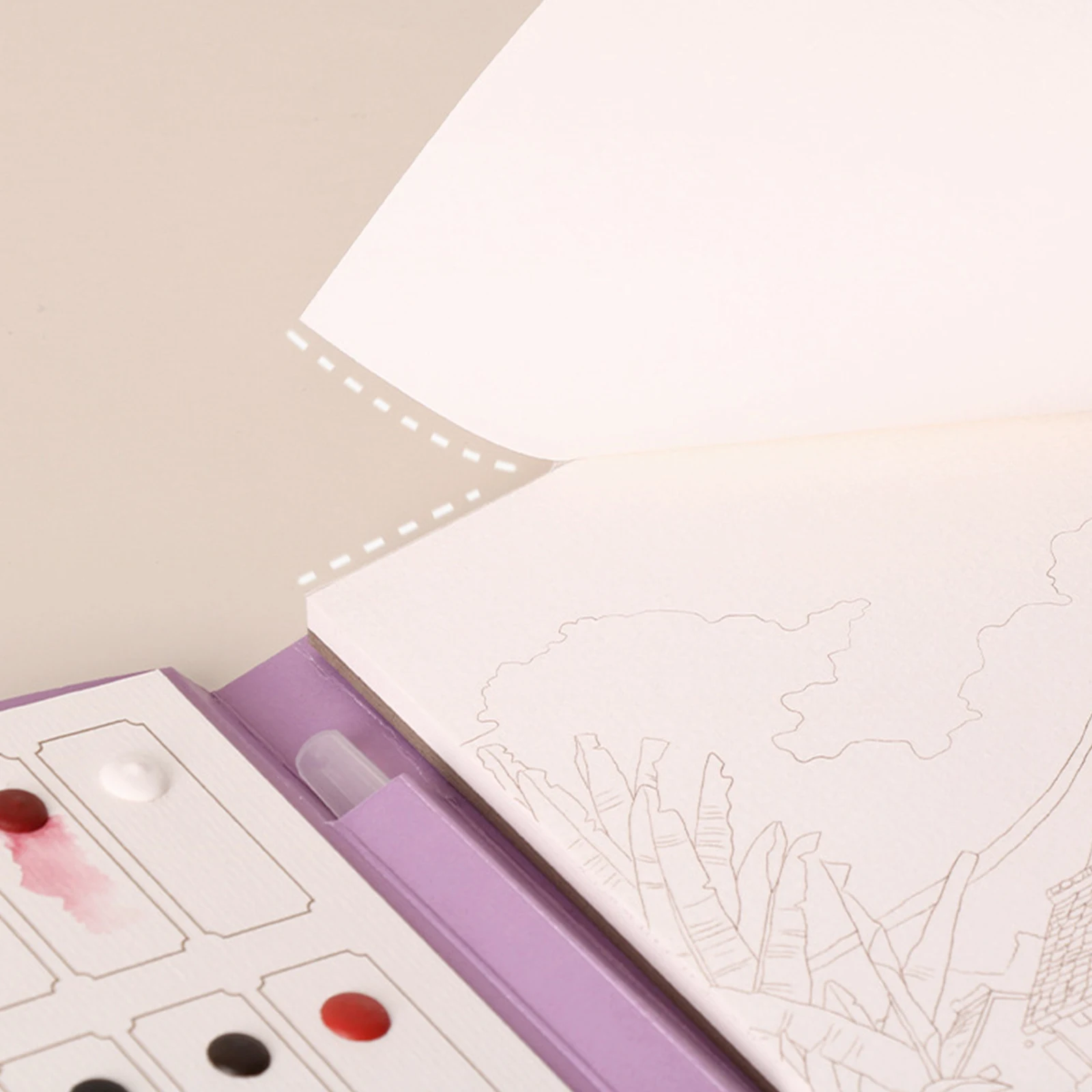 1.Kit creativo todo en uno:Este diseño integrado combina pintura y un bloc de dibujo, por lo que con el cuaderno de acuarela podrás empezar a pintar en cualquier momento y en cualquier lugar sin necesidad de herramientas adicionales, ideal para aliviar el estrés mientras viajas.