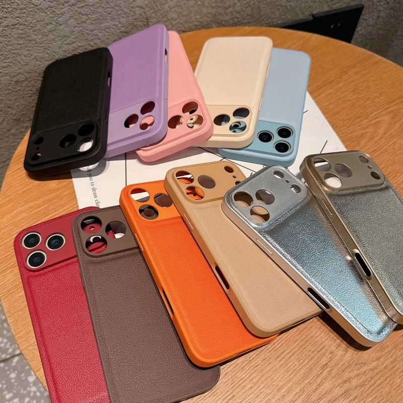 Lichee PU Funda de cuero mate IPhone 17 Pro Max 16E 15 14 13 Promax Color sólido a prueba de golpes cubierta suave para Iphone Air
