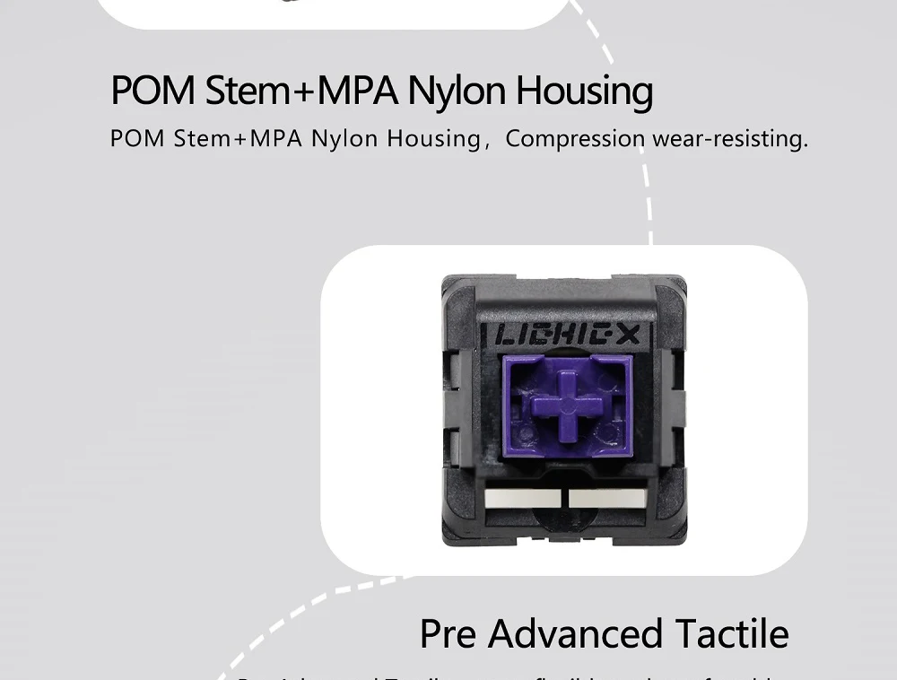 Comprar LICHICX XCJZ interruptor de bambú púrpura, 60g, RGB, SMD, interruptores táctiles preavanzados para teclado mecánico, eje MX, 5 pines, Lubed, MPA, nailon