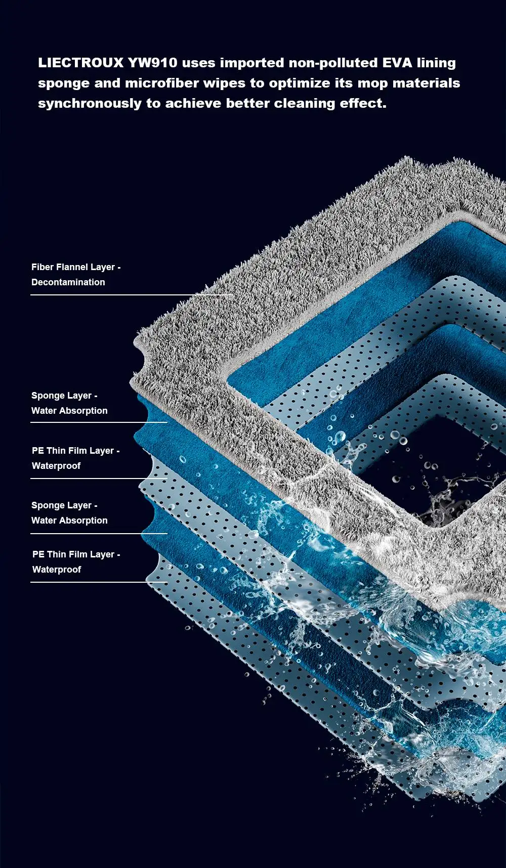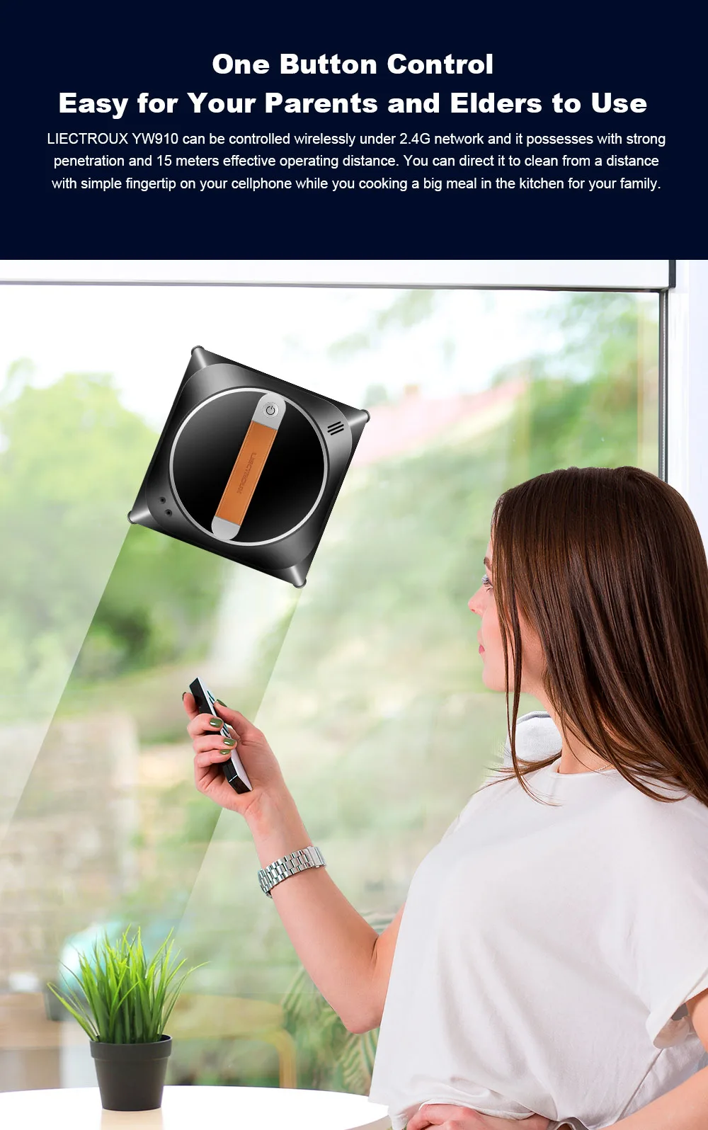 Liectroux YW910 Robot de limpieza de ventanas, doble rociador de agua, succión de vacío de 3000 Pa, sensor láser, aplicación y control remoto, función de memoria