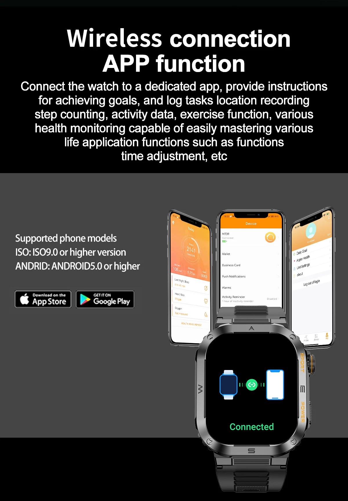 • IP68 impermeable :Se puede usar al nadar o ducharse sin preocuparse por el daño del agua.