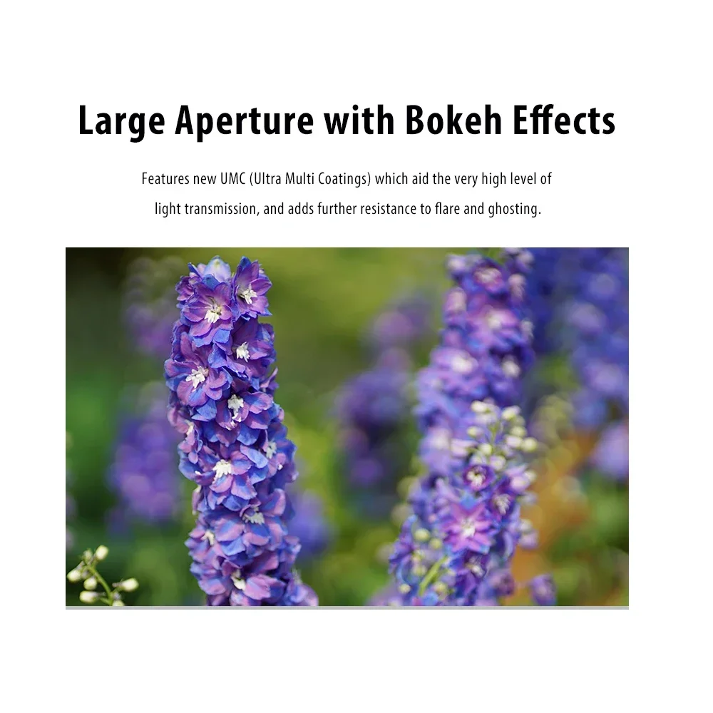- Gran apertura con una agradable calidad bokeh para mejorar aún más las imágenes en profundidad de campo poco profunda