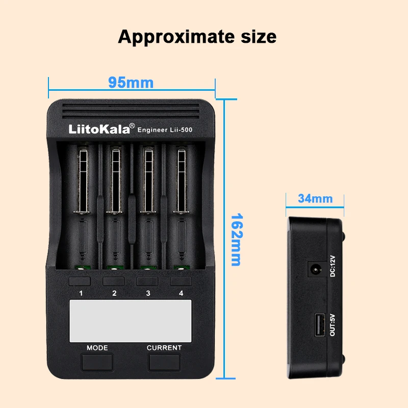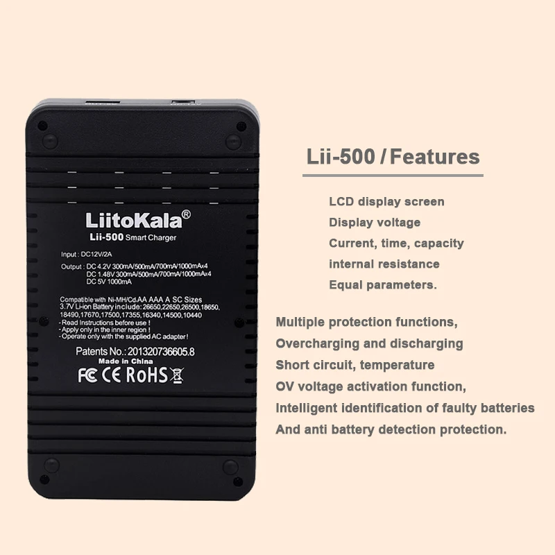 Comprar LiitoKala-cargador de batería con pantalla LCD, Lii-500, 3,7 V/1,2 V, AA/AAA, 18650/26650/16340/14500/10440/18500, adaptador de 12V 2a