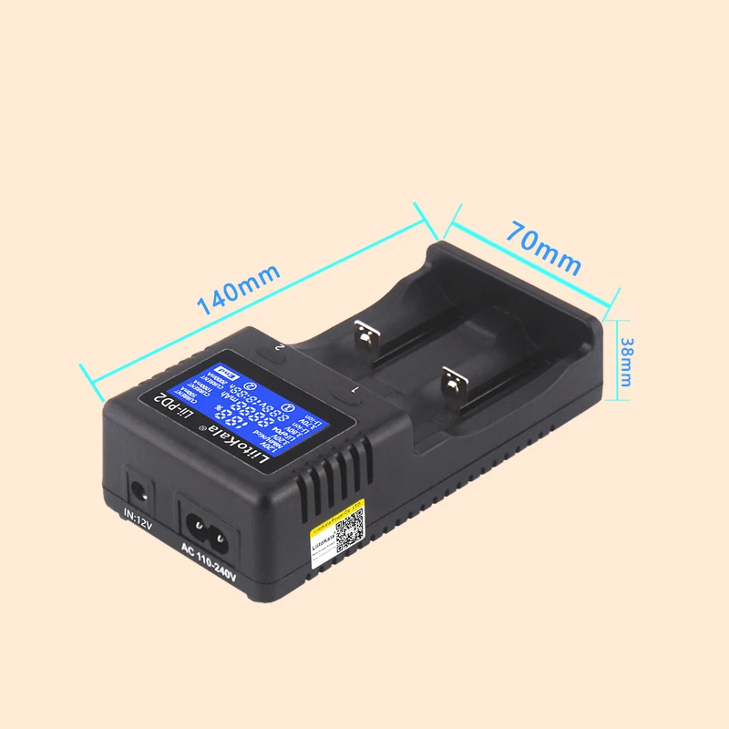 * La pantalla de carga LCD puede mostrar el porcentaje de carga, el voltaje, el tiempo, la capacidad y el tipo de batería Ni-MH 1,2 V, Li-Fe 3,2 V, Li-ion 3,7 V, Li-ion 3,80 V (IMR).