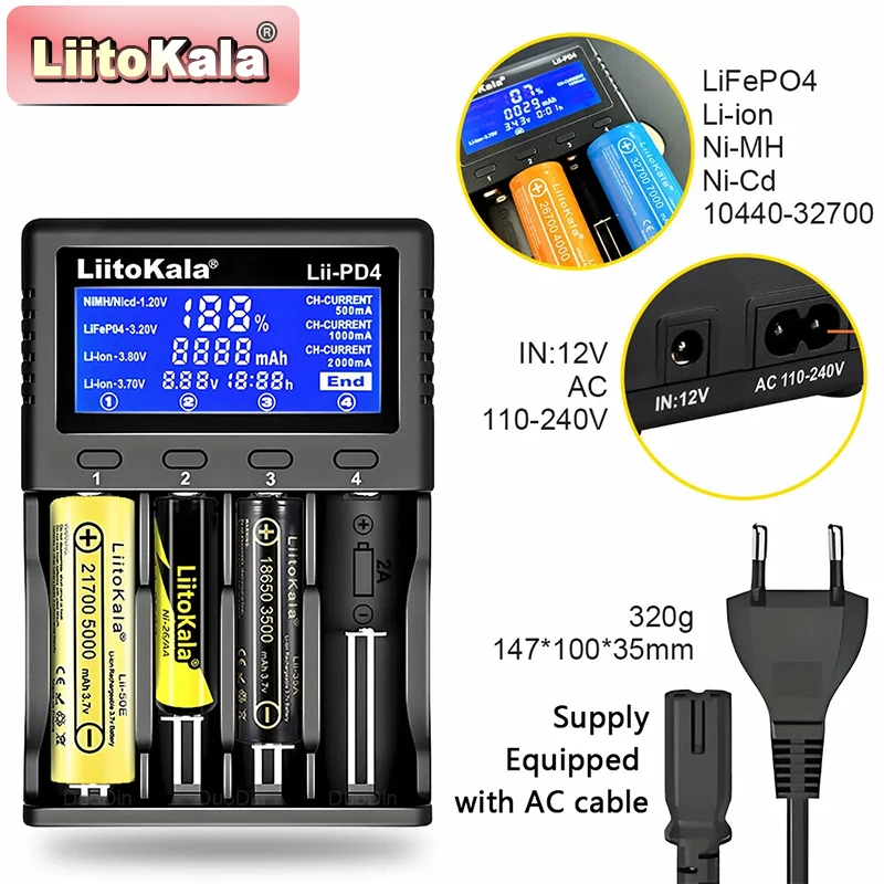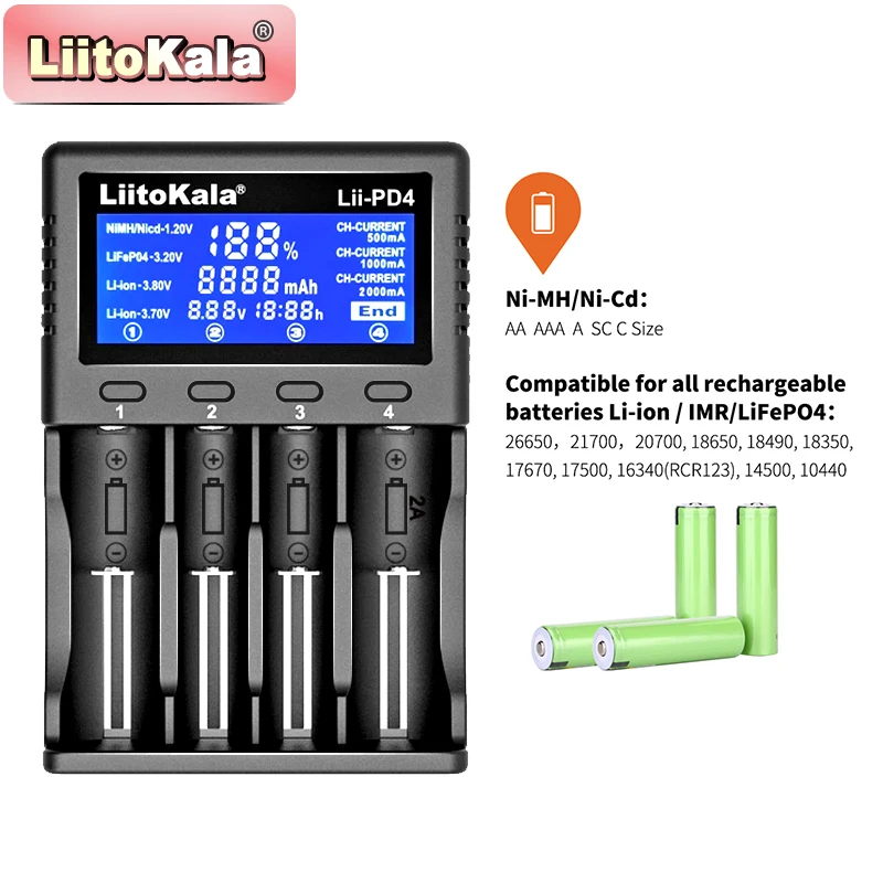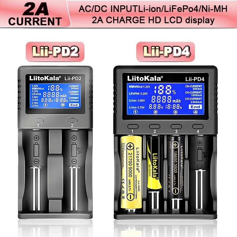 Comprar LiitoKala Lii-PD2 PD4 18650 cargador de batería para 3,7 V Li-ion 18650/18500/16340/26650/21700 /20700/18350/CR123A 1,2 V batería + coche