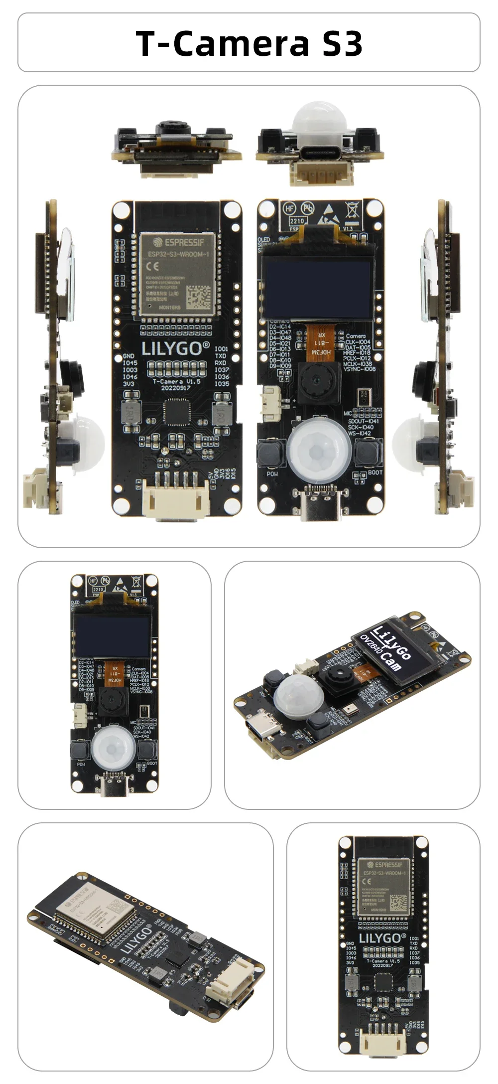 Comprar LILYGO®T-camera-cámara S3 ESP32-S3, 2 millones de píxeles, HD, FLASH, 16MB, ESP32-Cam, con 0,96 "SSD1306 OLED Mic Pir PMU