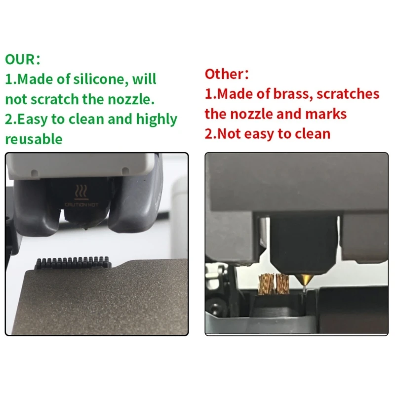 Características:OOTDTYCepillo de silicona Herramienta de limpieza de boquillas de impresora 3D que no raya la boquilla.