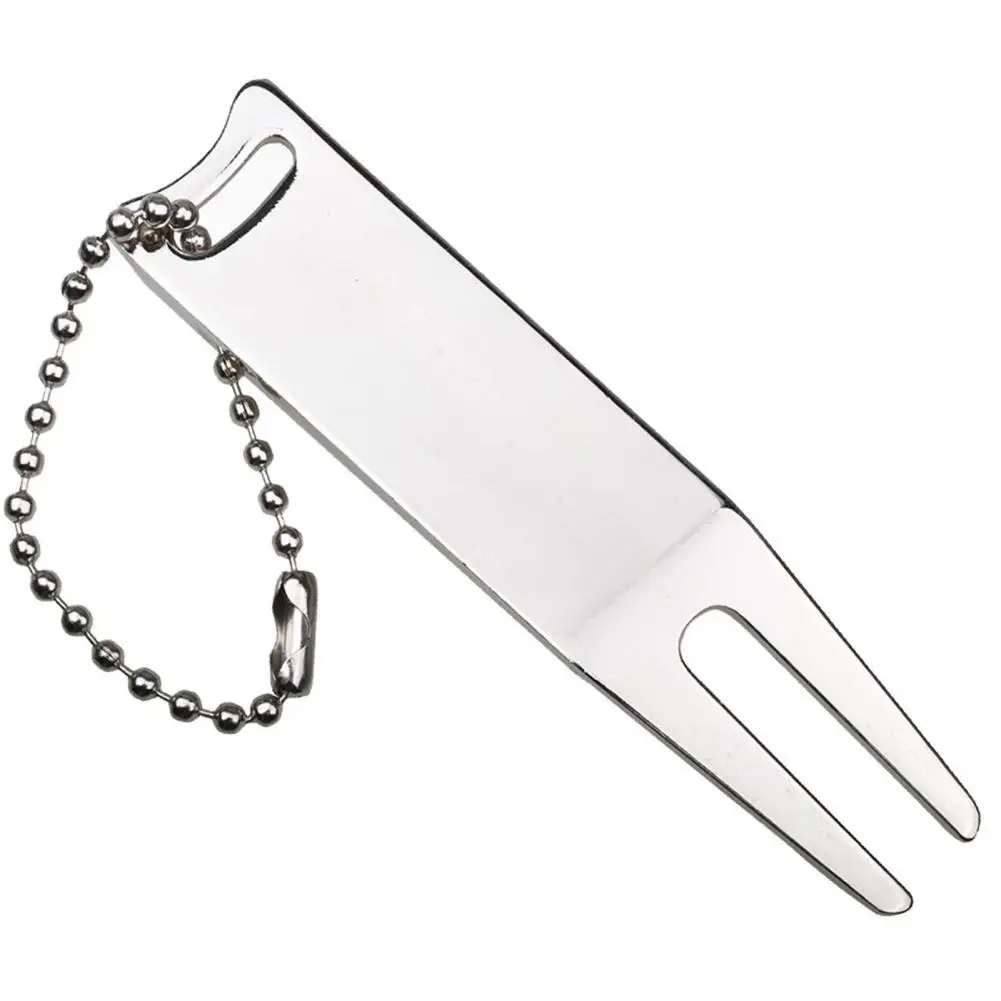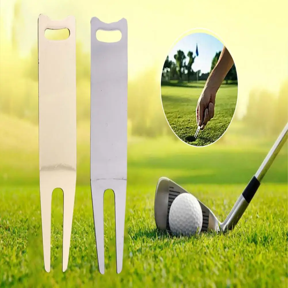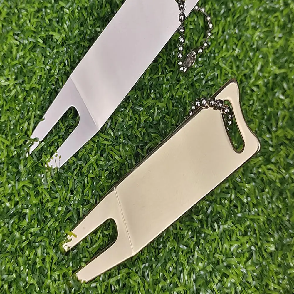 Horquilla de reparación de golf compacta y mini diseñada para facilitar su transporte y uso en el campo.