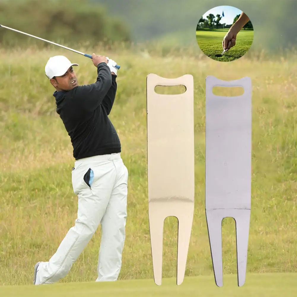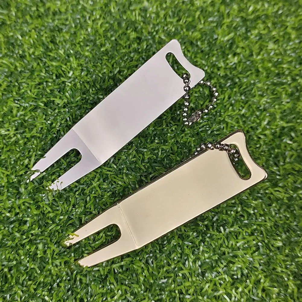 Horquilla de reparación de golf compacta y mini diseñada para facilitar su transporte y uso en el campo.