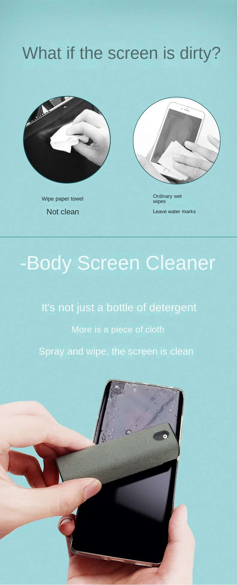 4. Pantalla de teléfono móvil, espejo portátil, la pantalla está tan limpia como nueva, sin spray, sin manchas de aceite, conveniente y práctica, solo necesita una botella de spray/un paño.