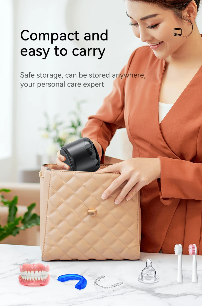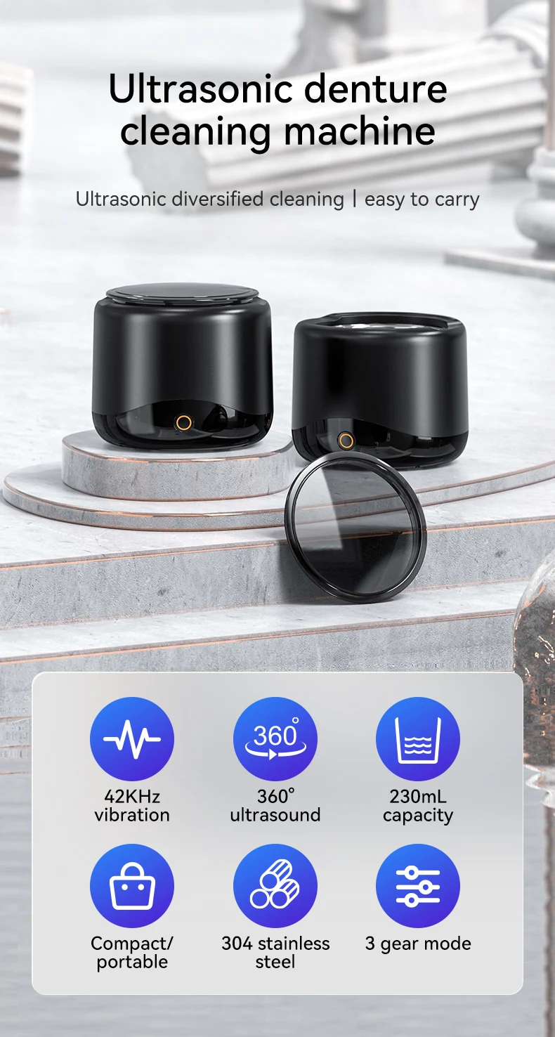 1. Limpieza profunda ultrasónica:El limpiador ultrasónico utiliza ondas sonoras de alta frecuencia de 42-45 KHz para penetrar en grietas y ranuras, cubriendo 360° para atravesar la suciedad y eliminar eficazmente partículas/suciedad de dentaduras postizas, retenedores, protectores bucales, ortodoncia, aparatos ortopédicos, bandejas blanqueadoras, protectores nocturnos, joyas, etc.sin dañar artículos delicados.