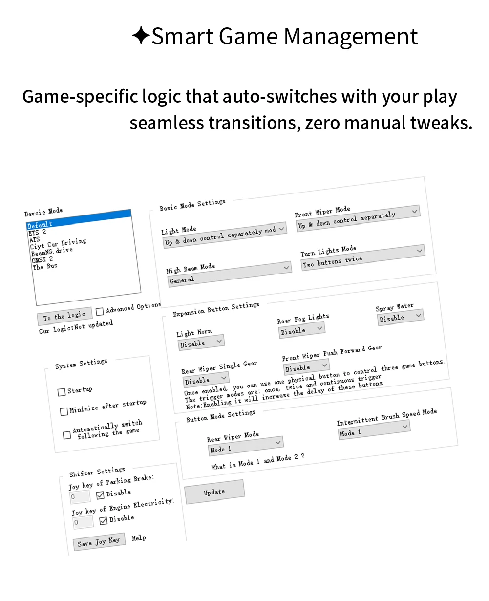 Para T300 Simulador de carreras Volante Euro/americano camión limpiaparabrisas de señal de giro interruptor de encendido de crucero de rebote automático