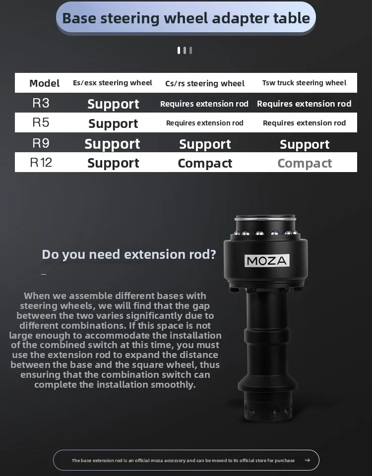 - R5: soporte para volante ES/ESX; Se requiere varilla de extensión para el volante CS/RS; Se requiere varilla de extensión para el volante del camión TSW.