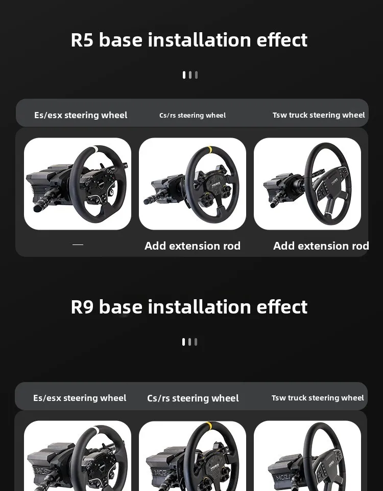 - R9: soporte para volante ES/ESX; soporte para volante CS/RS; Volante de camión TSW.