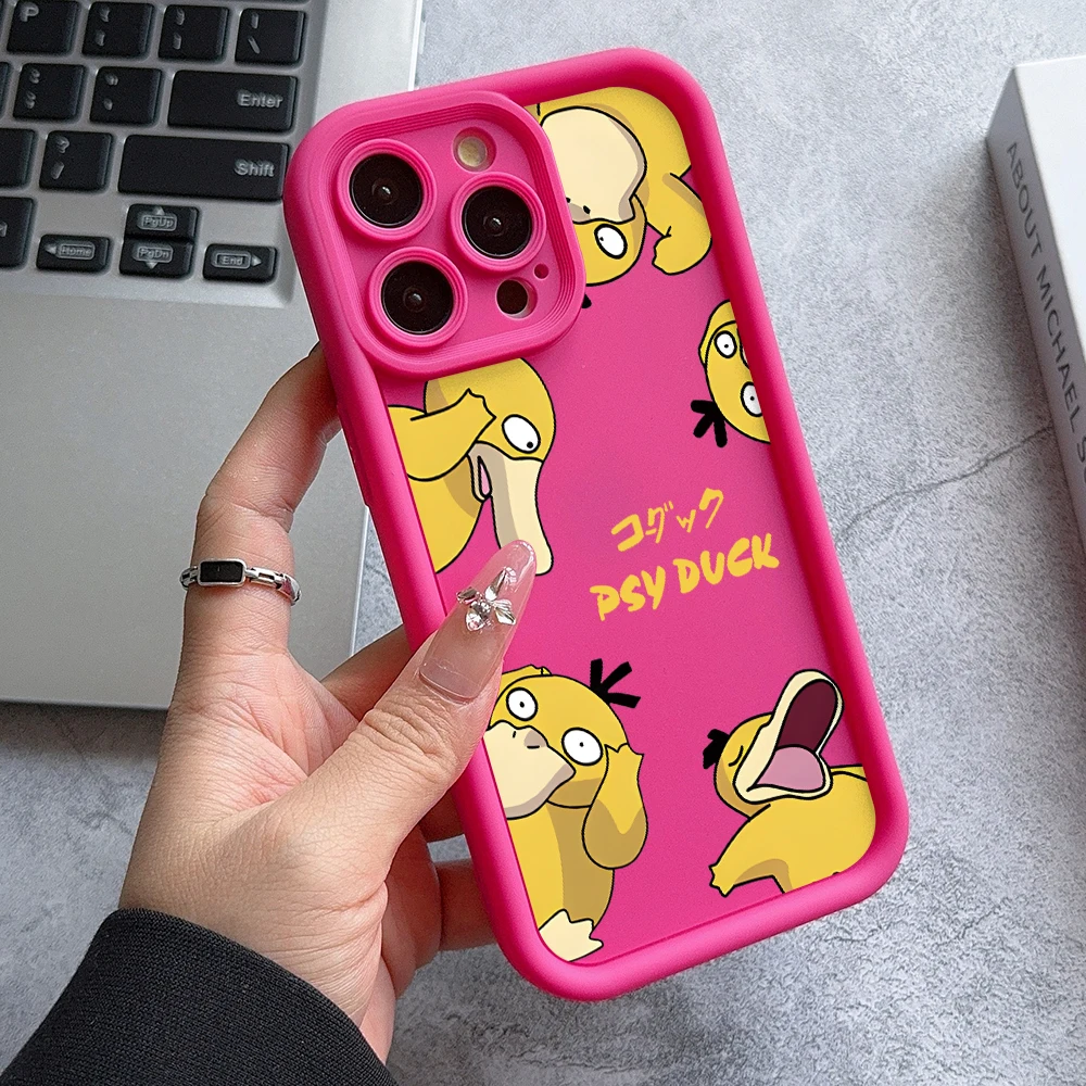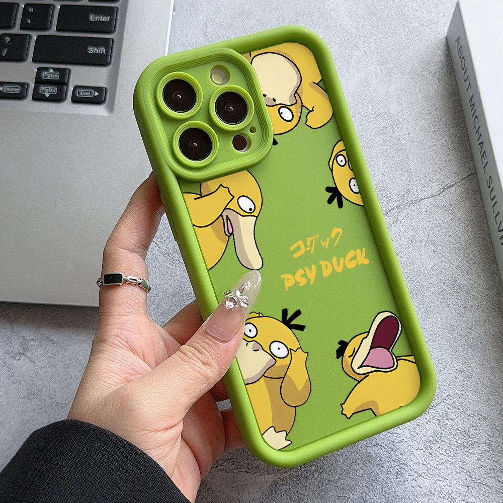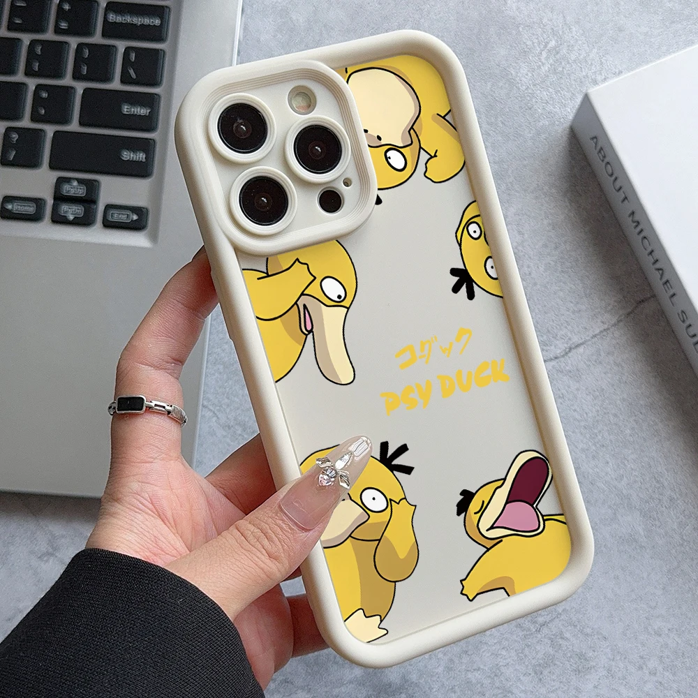 Linda funda de teléfono Psyduck para iPhone 16 15 14 Plus 13 12 Mini 11 Pro Max X Xs XR 8 7 cubierta protectora de lente de escalera de TPU suave