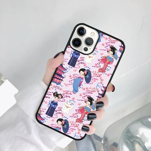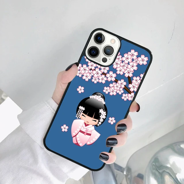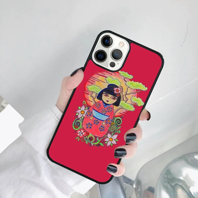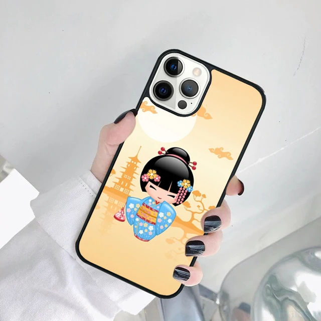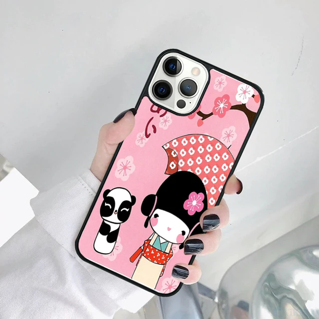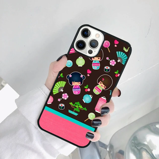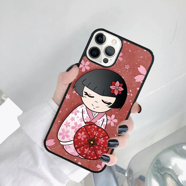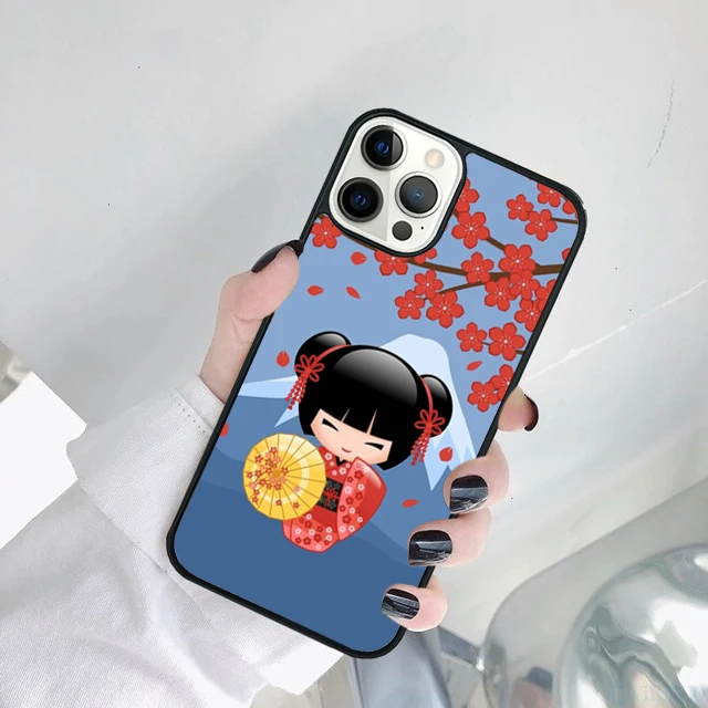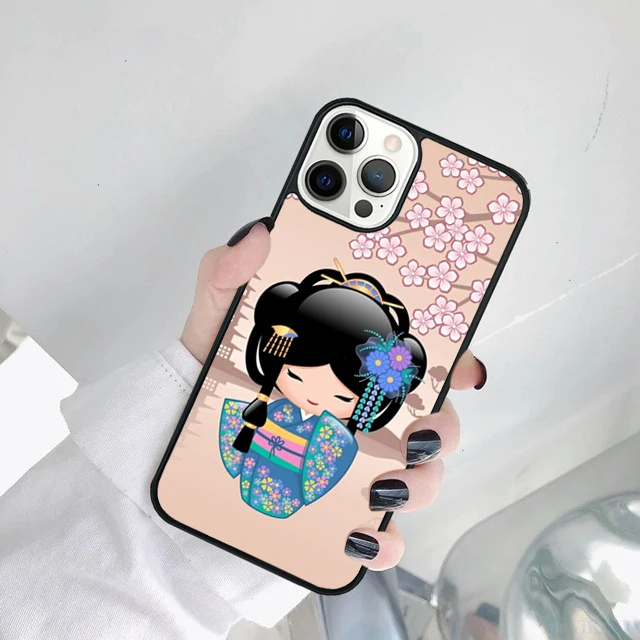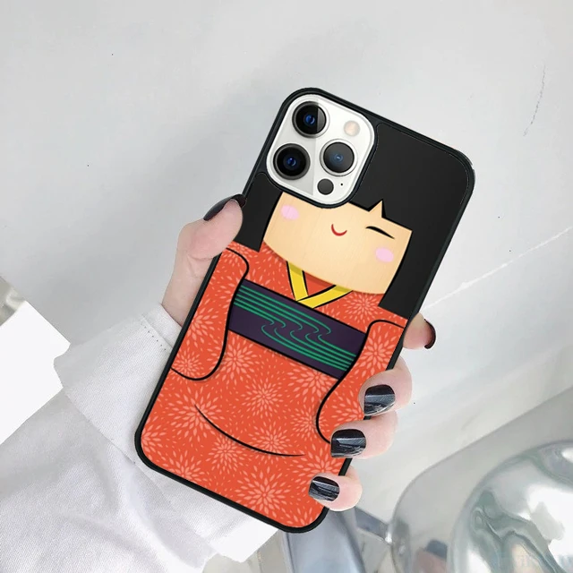 Linda muñeca japonesa Kokeshi funda de teléfono para iPhone 17 Air 15 16 14 11 12 13 Pro MAX Plus