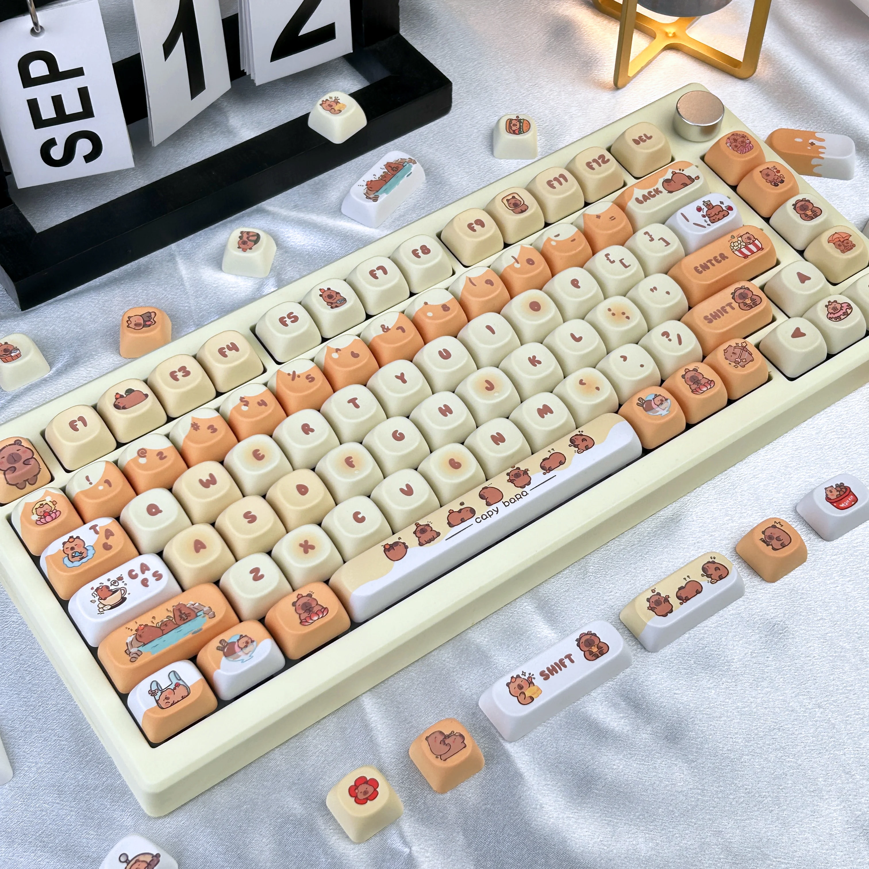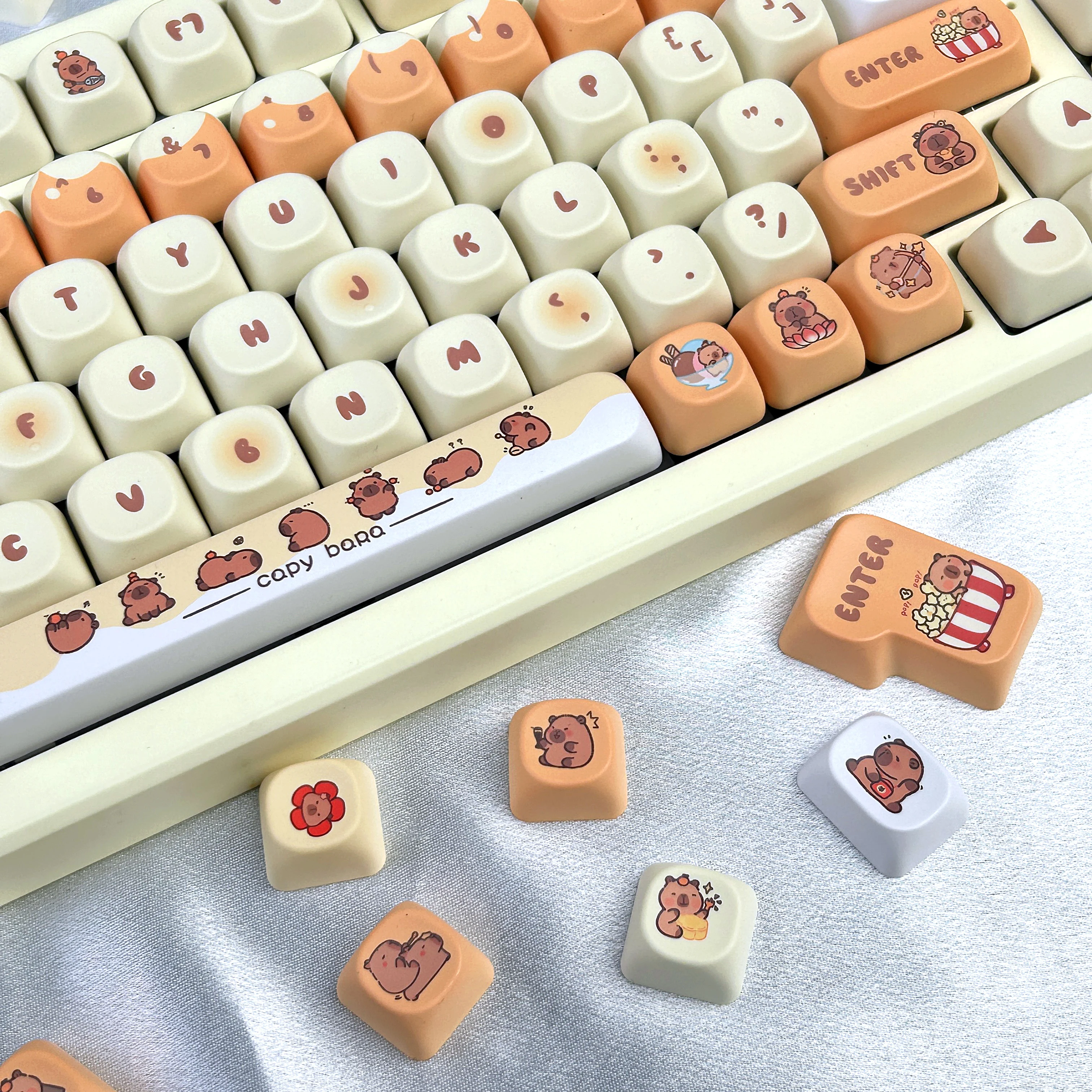 Estas teclas son incluso mejores que en las fotos. Tienen colores brillantes, las leyendas y los diseños se ven geniales y están hechos con material PBT grueso.