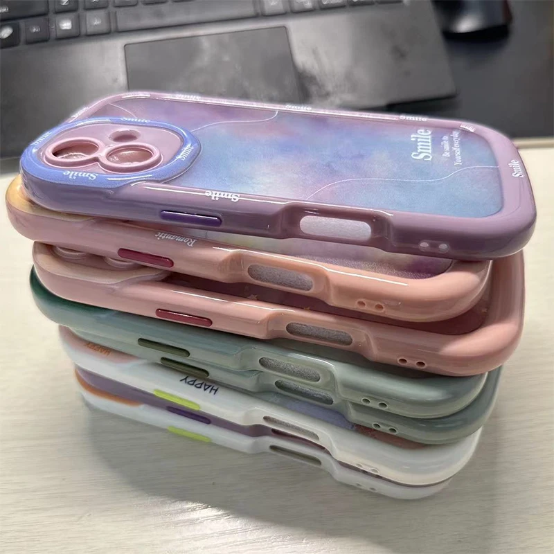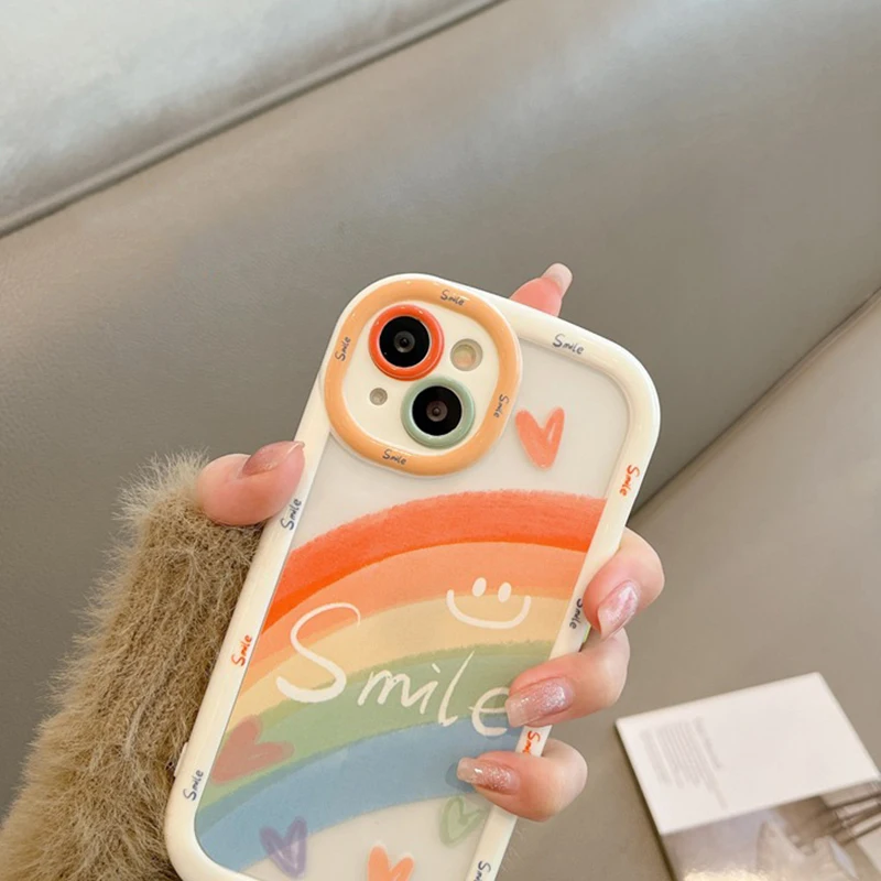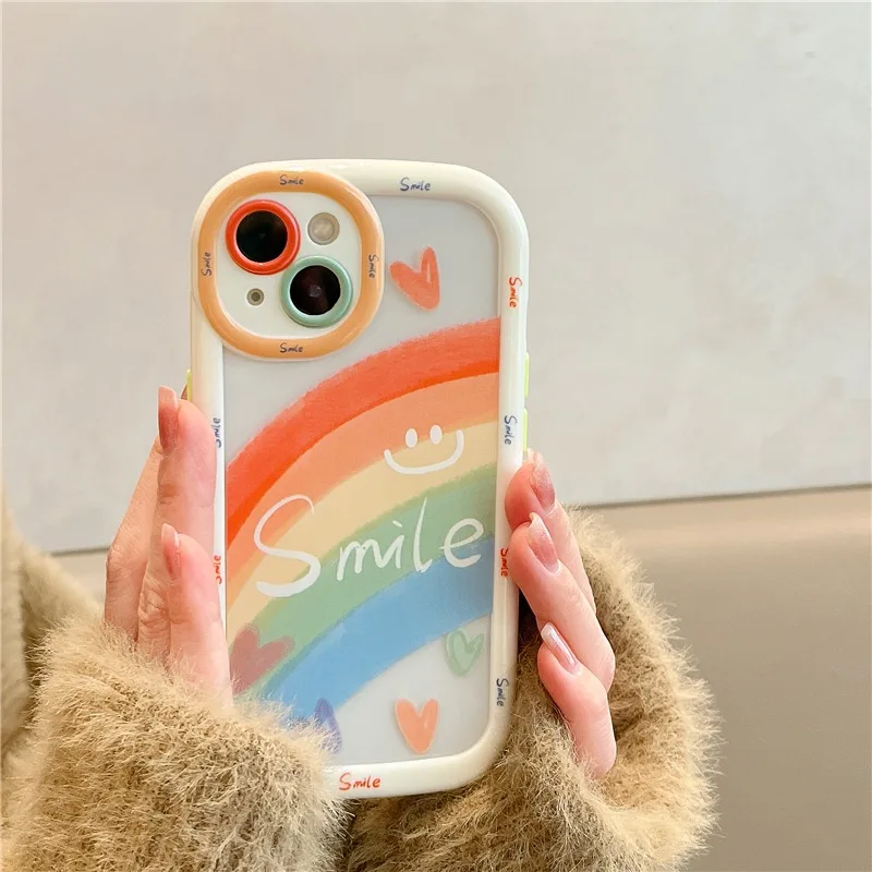Funda trasera de parachoques a prueba de golpes con forma de corazón de amor y sonrisa de arcoíris para iPhone 11 12 13 14 15 16 Pro Max