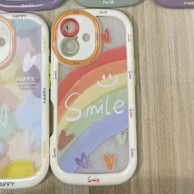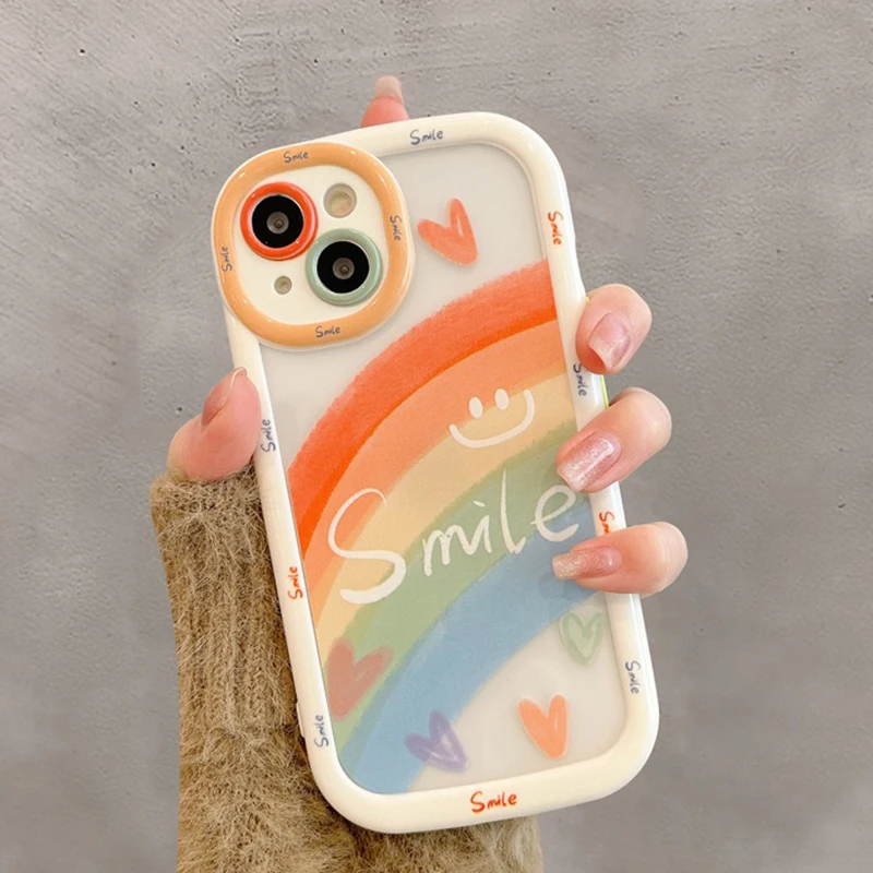 Comprar Lindo Arco Iris amor corazón sonrisa a prueba de golpes parachoques contraportada para iPhone 11 12 13 14 15 16 Pro Max funda de teléfono
