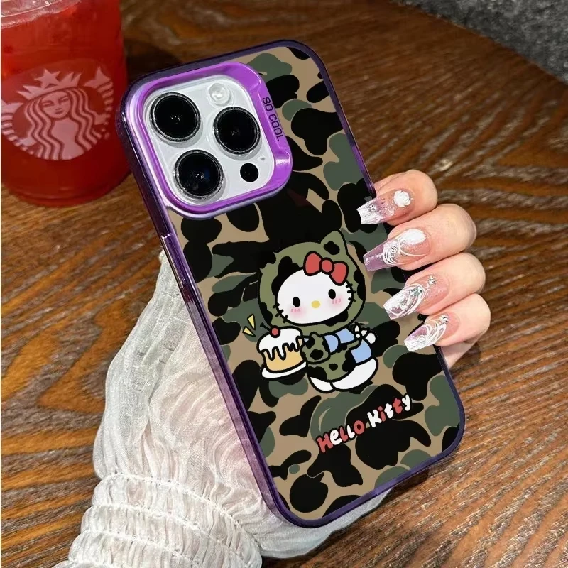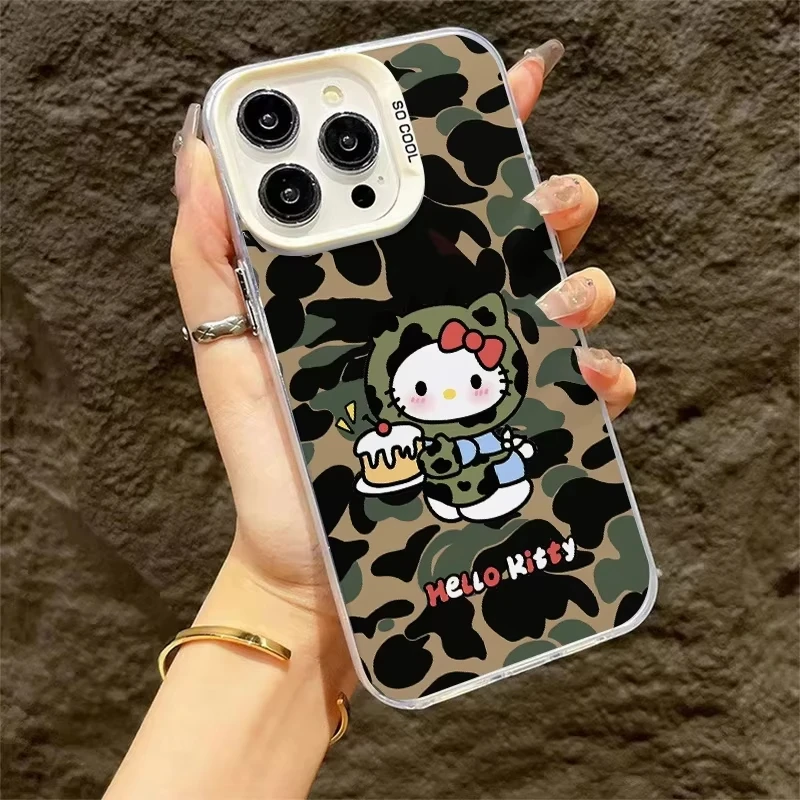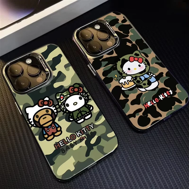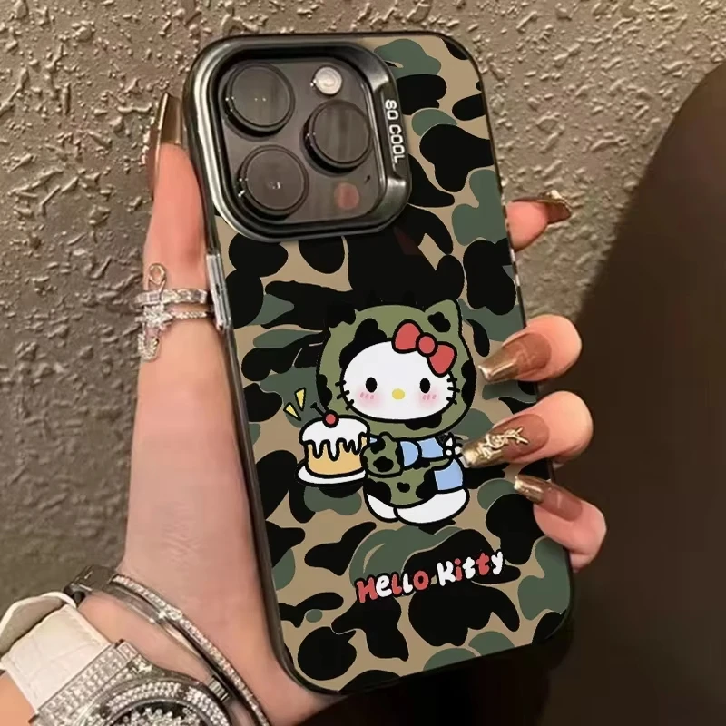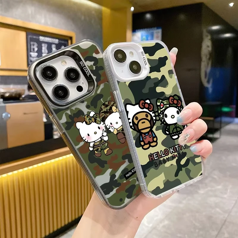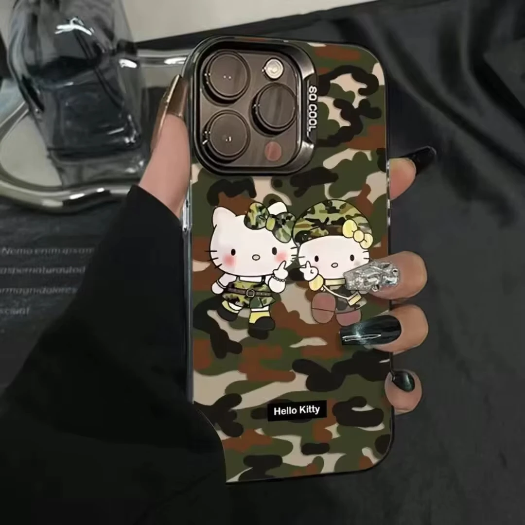 Comprar Lindo camuflaje Hello Kitty para Iphone 17 16e 16 15 14 13 12 11 Pro Max Plus 17 Air Armor duro Y2K dibujos animados Sanrio cubierta