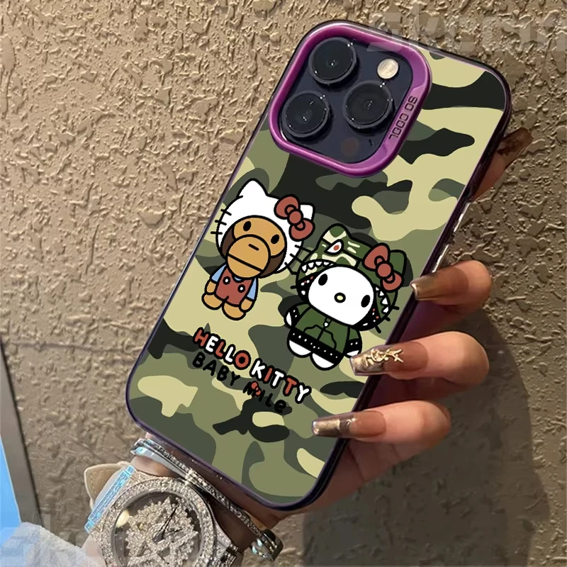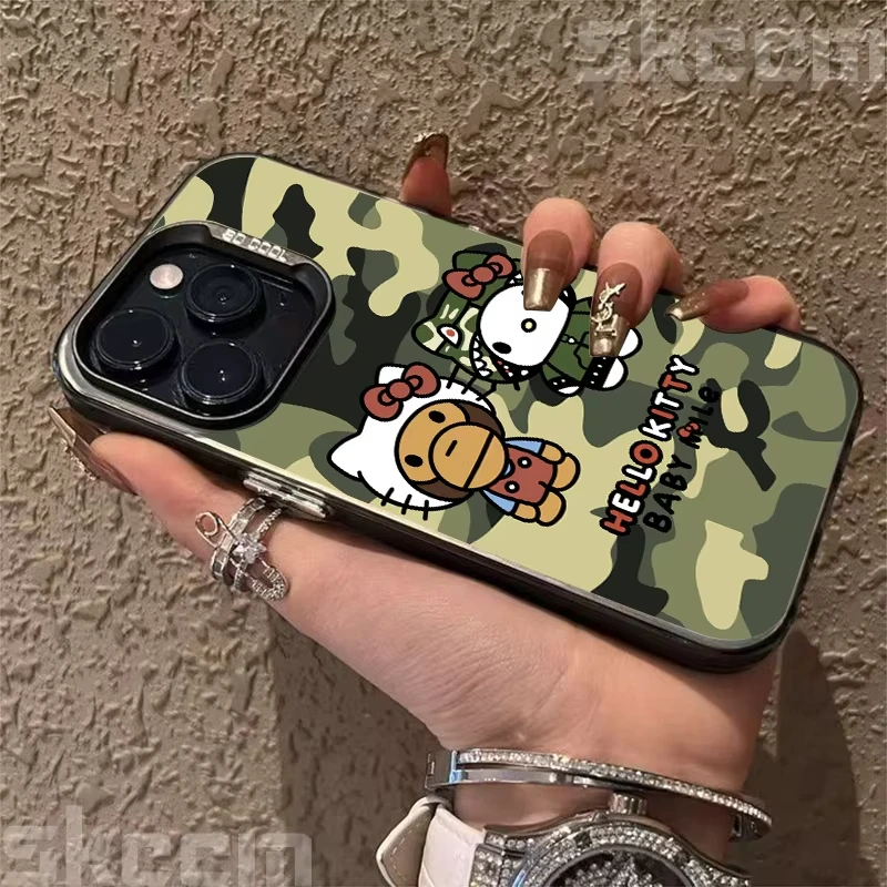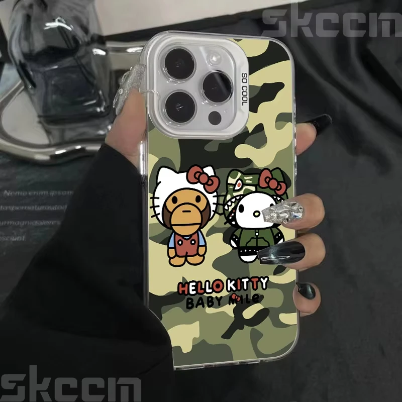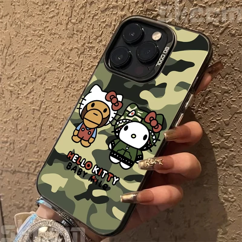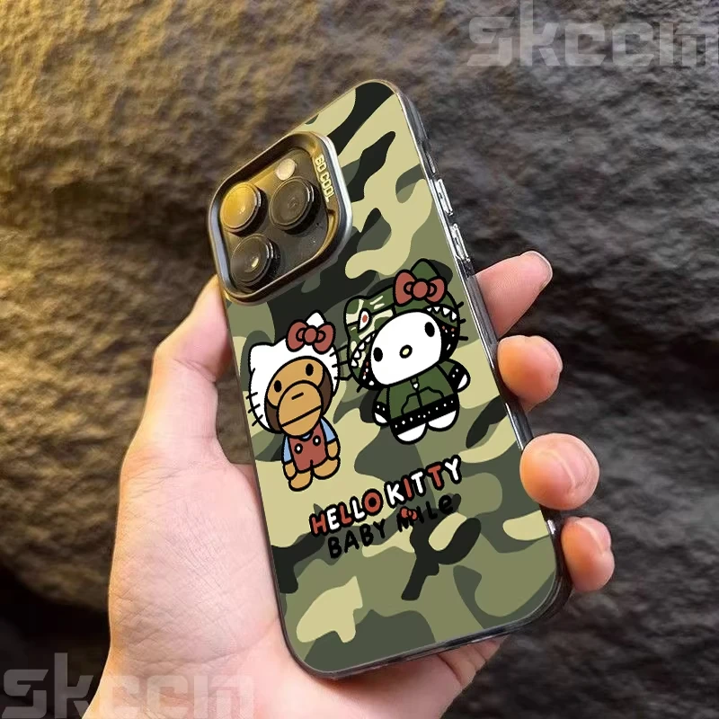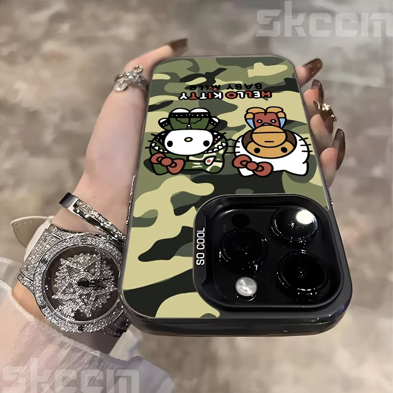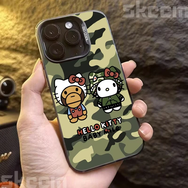 Comprar Lindo camuflaje Hello Kitty para Iphone 17 16e 16 15 14 13 12 11 Pro Max Plus 17 Air Armor duro Y2K dibujos animados Sanrio cubierta