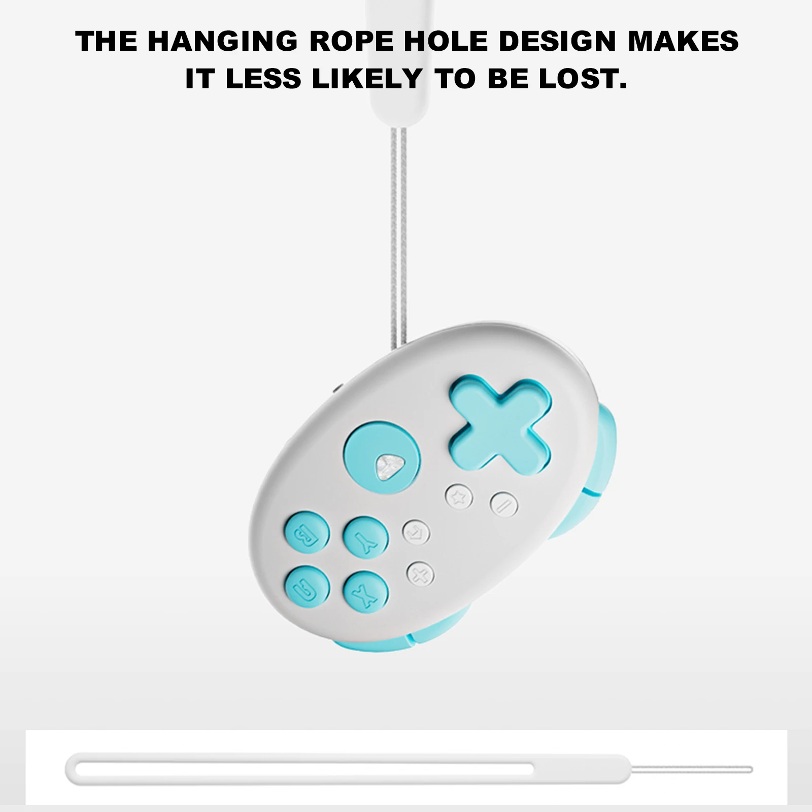 3. Orificio exclusivo para cordón para mayor seguridad:Minimiza el riesgo de extravío con el orificio para cordón dedicado de nuestro joystick portátil.Diseñado pensando en su comodidad, mantiene su amado dispositivo compacto seguro y accesible.
