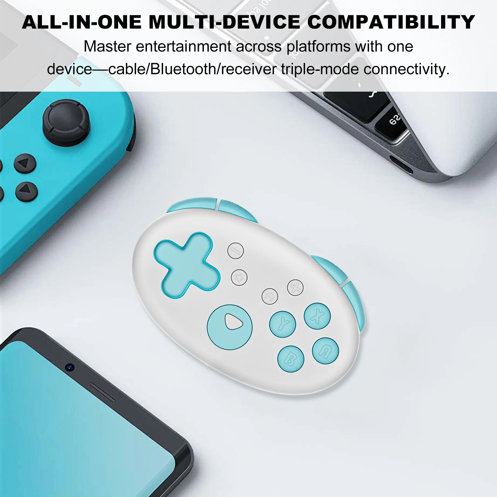 5.Juego multiplataforma todo en uno:El pequeñoEl controlador BT admite modos de cable, Bluetooth y receptor, lo que permite una conexión perfecta entre múltiples plataformas para un entretenimiento versátil y sin complicaciones en cualquier lugar.