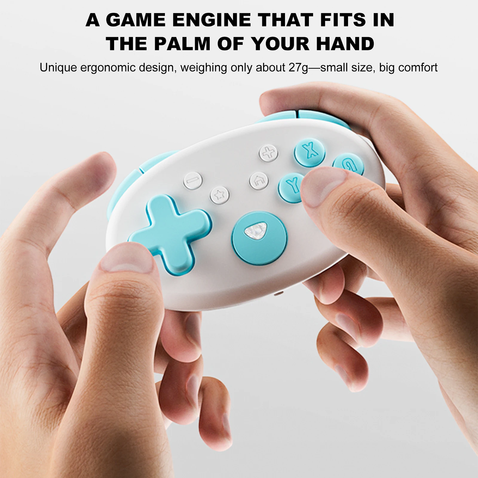 1.Mini motor de juego ergonómico:Experimente la comodidad con nuestros gamepads para PC que presentan un diseño ergonómico único y pesan solo unos 27 g.Disfrute de la máxima potencia de juego en la palma de su mano sin sacrificar la portabilidad ni la facilidad de uso.