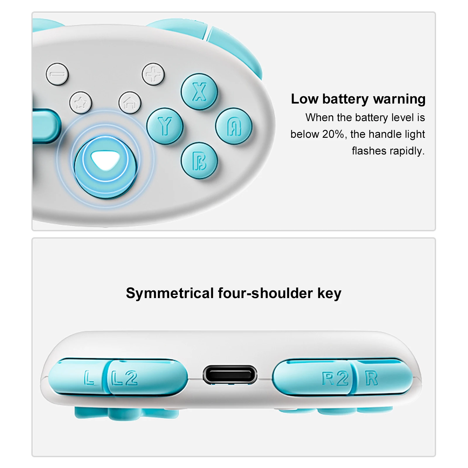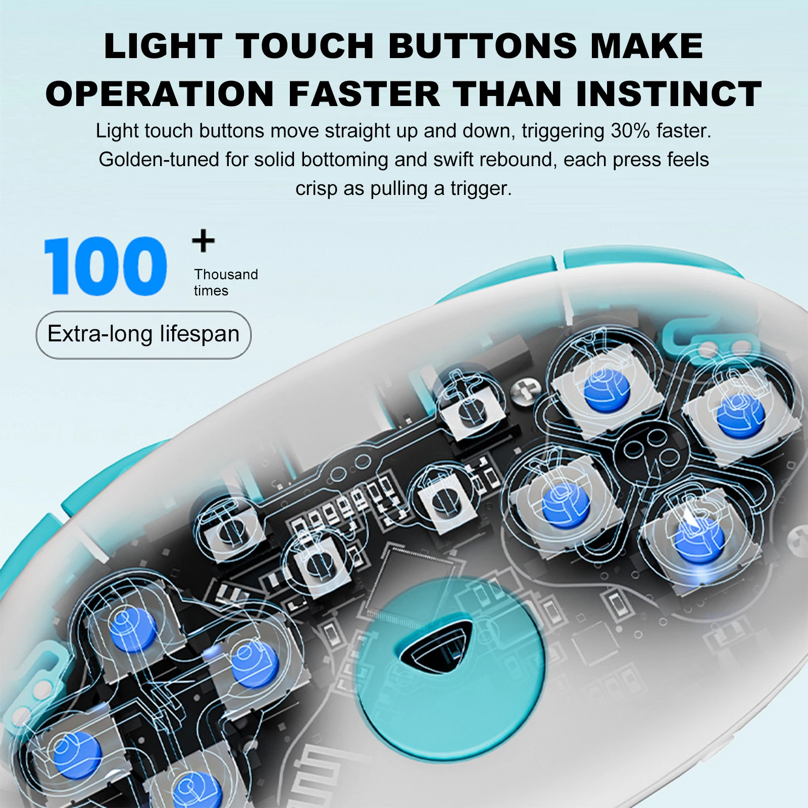 2.Control de botón de respuesta rápida:El lindo controlador de juego cuenta con botones ultraresponsivos diseñados para una acción rápida y directa.Las respuestas del gatillo son un 30% más rápidas, con un fondo sólido hacia afuera y un rebote nítido, lo que hace que cada prensa se sienta nítida y satisfactoria.