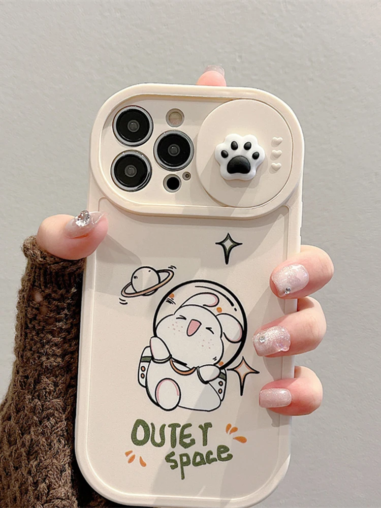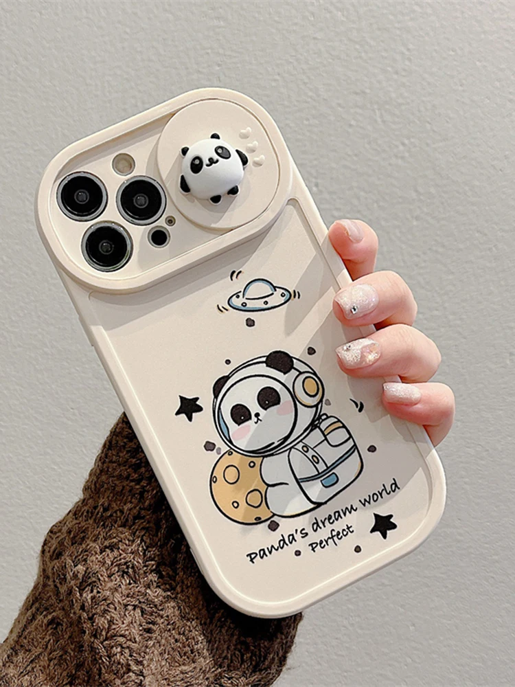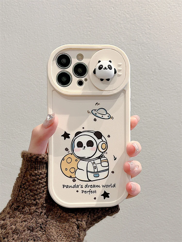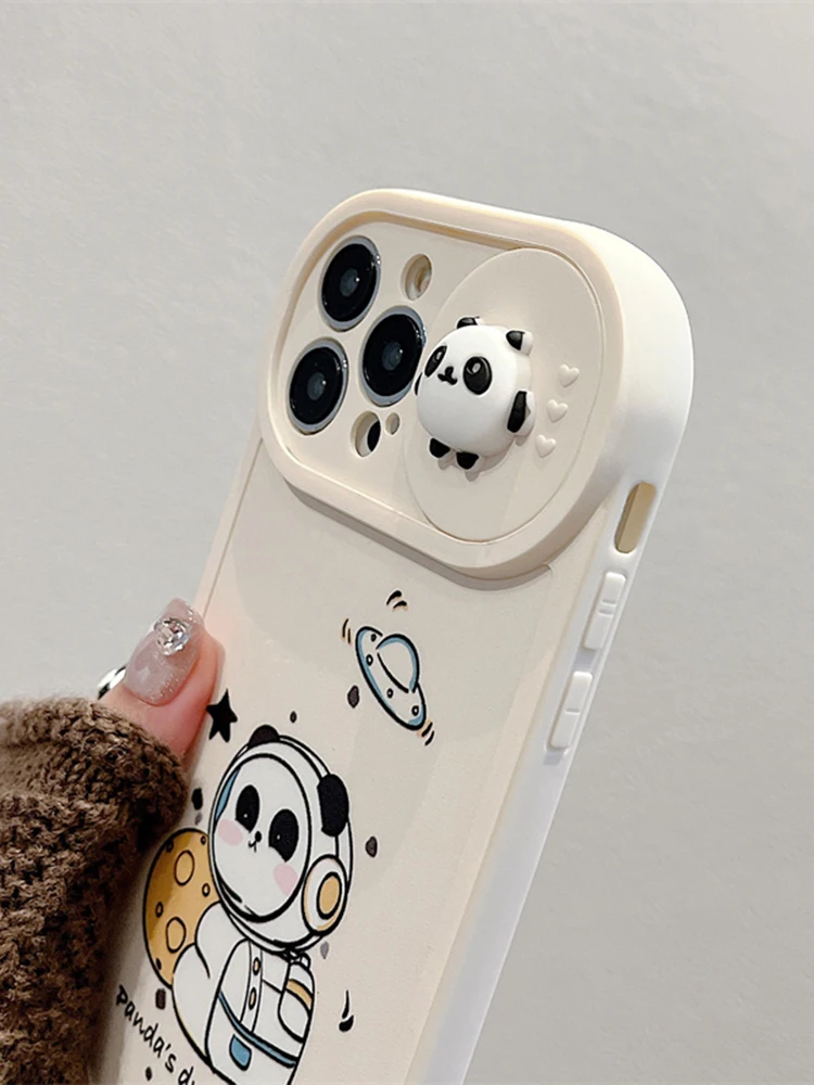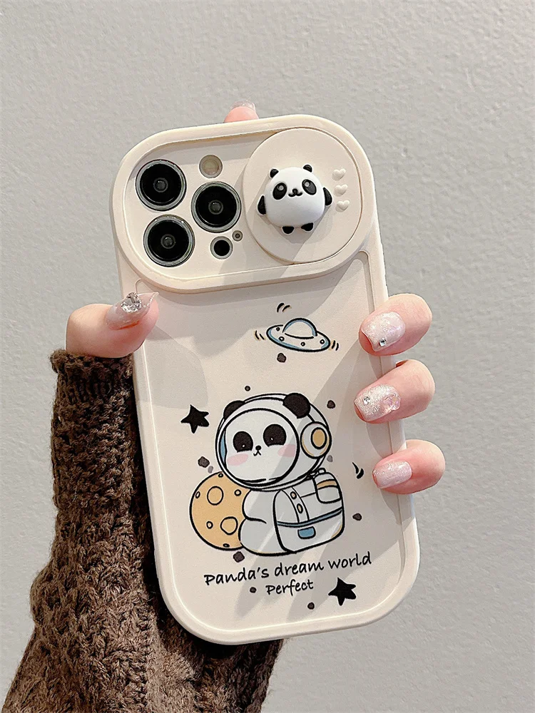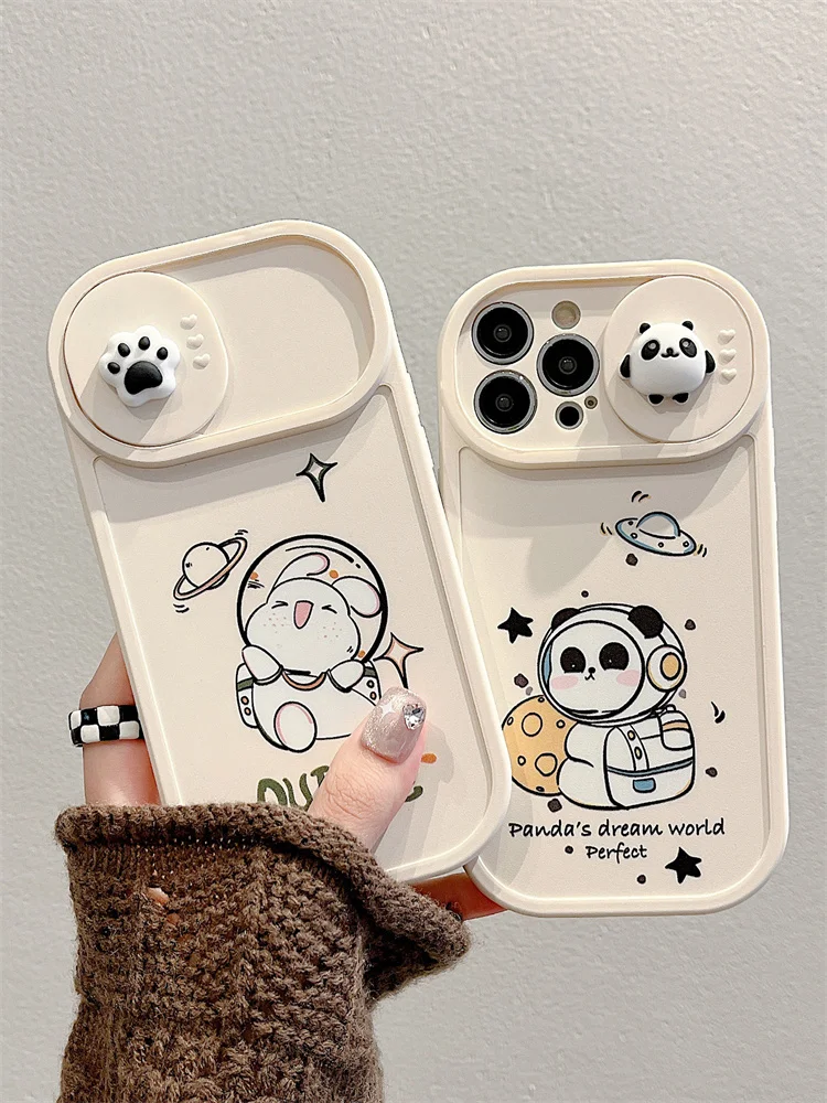 Cute Panda Rabbit DIY to Push Window Camera Cover Funda de teléfono para iPhone 11 12 13 14 15 Pro Max Fundas de moda