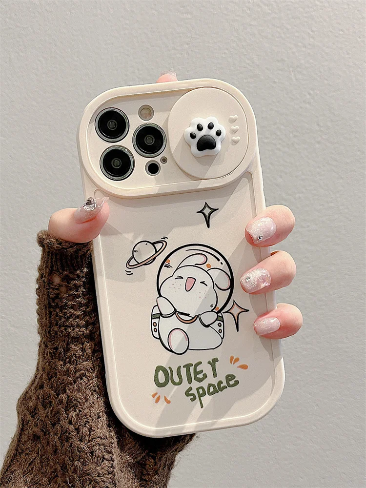 Cute Panda Rabbit DIY to Push Window Camera Cover Funda de teléfono para iPhone 11 12 13 14 15 Pro Max Fundas de moda