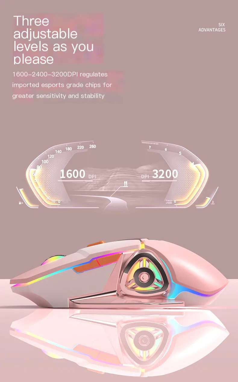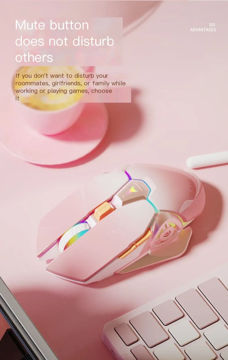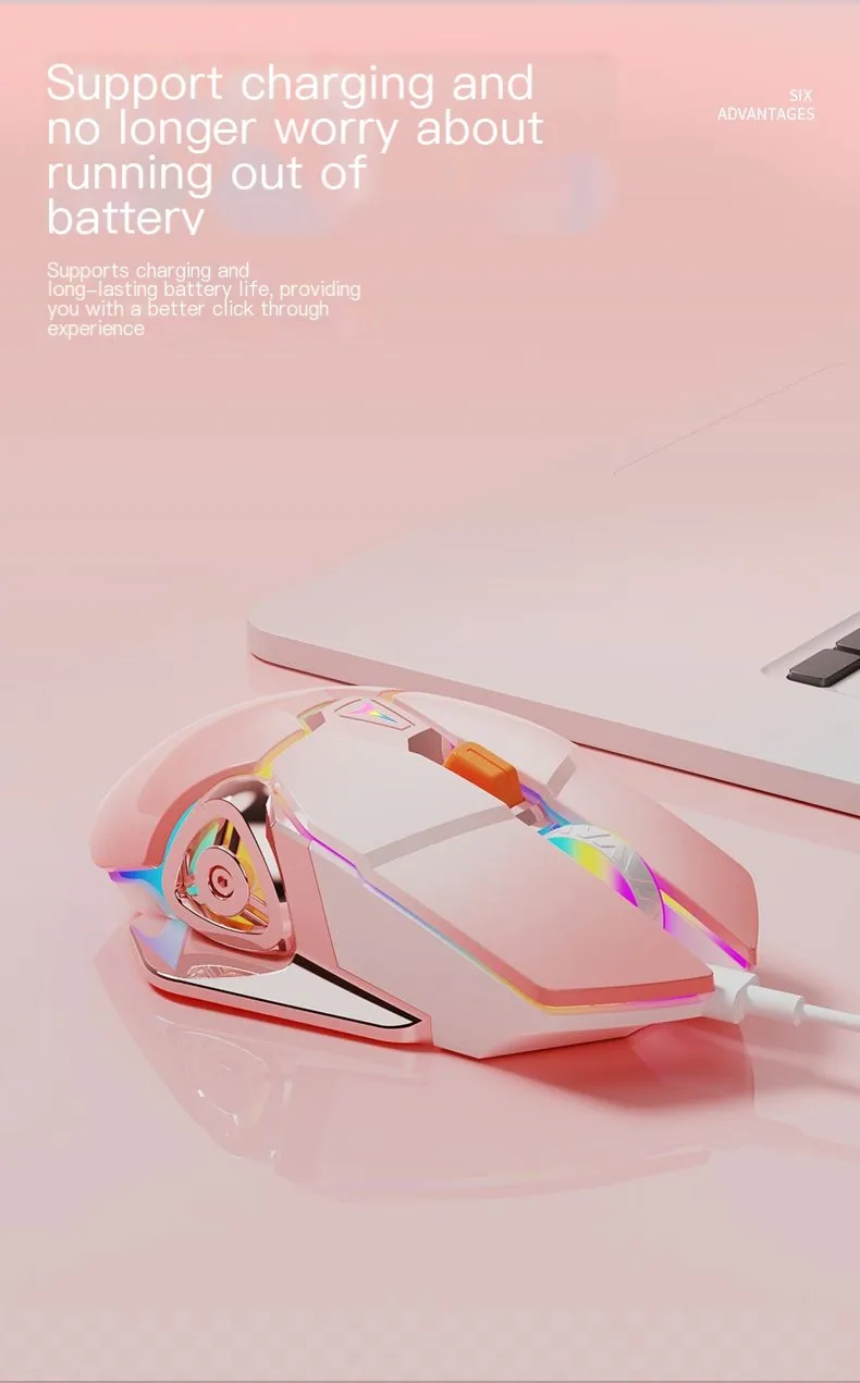Lindo ratón inalámbrico de 2,4G silencioso recargable mecánico Esports Mause ergonómico retroiluminado ratón de juego para oficina ordenador portátil