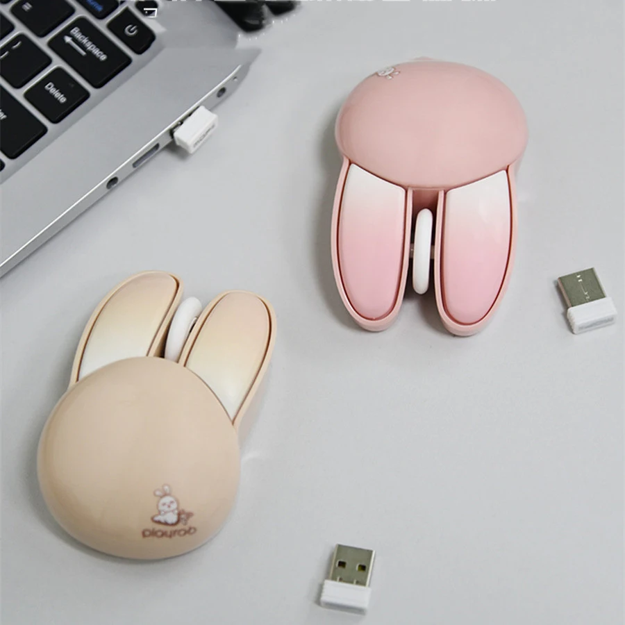 Comprar Lindo ratón inalámbrico de conejo Kawaii, diseño de animales de dibujos animados, 3D, ergonómico, silencioso, óptico, USB, para ordenador portátil y PC