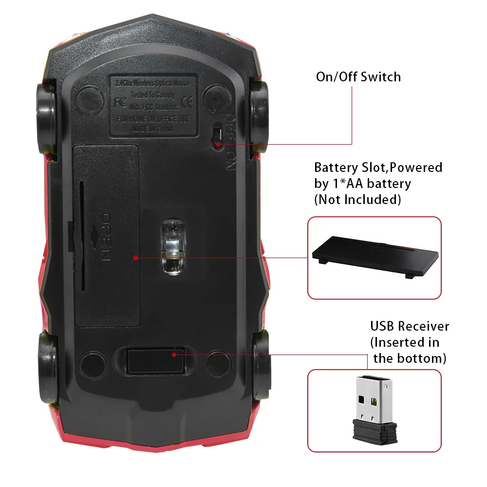 Ratón de computadora con gran tamaño: el tamaño del mouse del automóvil es 116*60*30 mm, cómodo de agarrar y funciona con 2 pilas AAA (no incluidas)