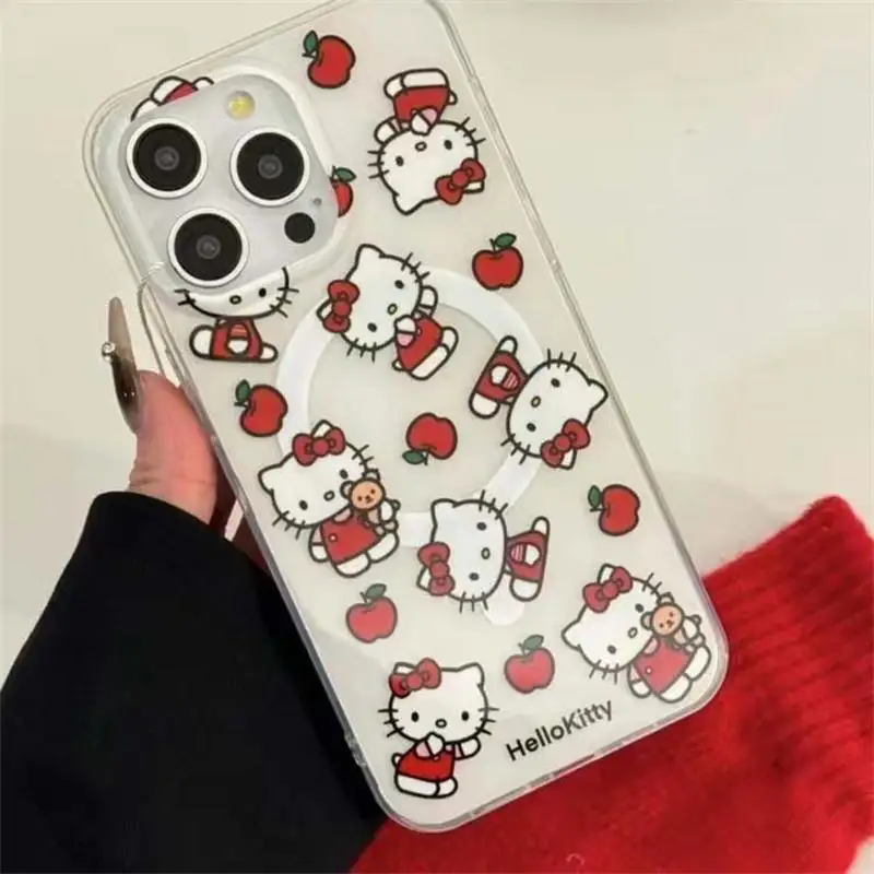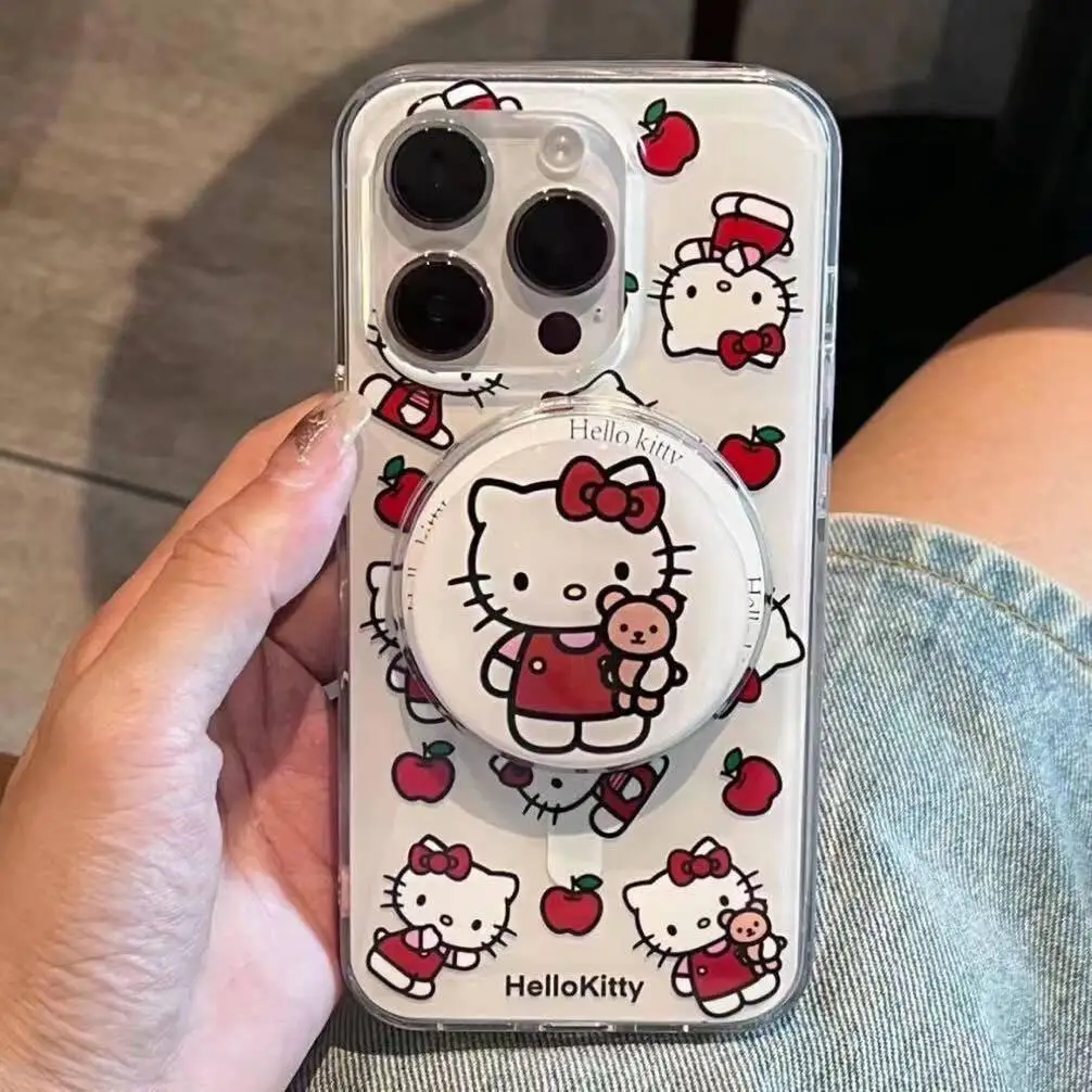 Comprar Lindo Sanrio Hello Kitty soporte magnético Magsafe carga inalámbrica funda de teléfono para Iphone 15 14 13 12 11 Pro Max encantadora cubierta dura