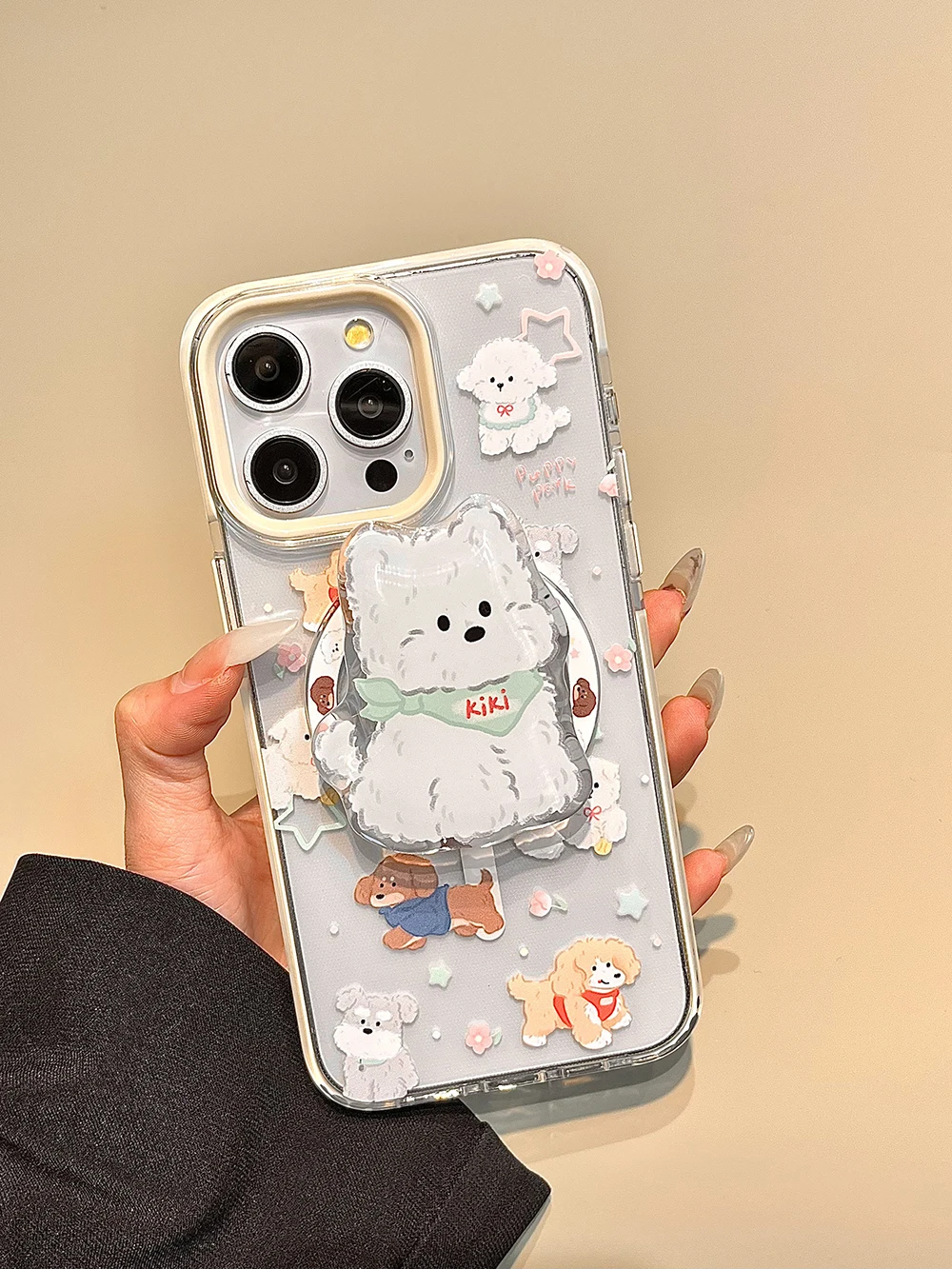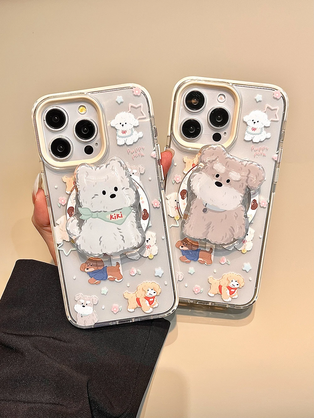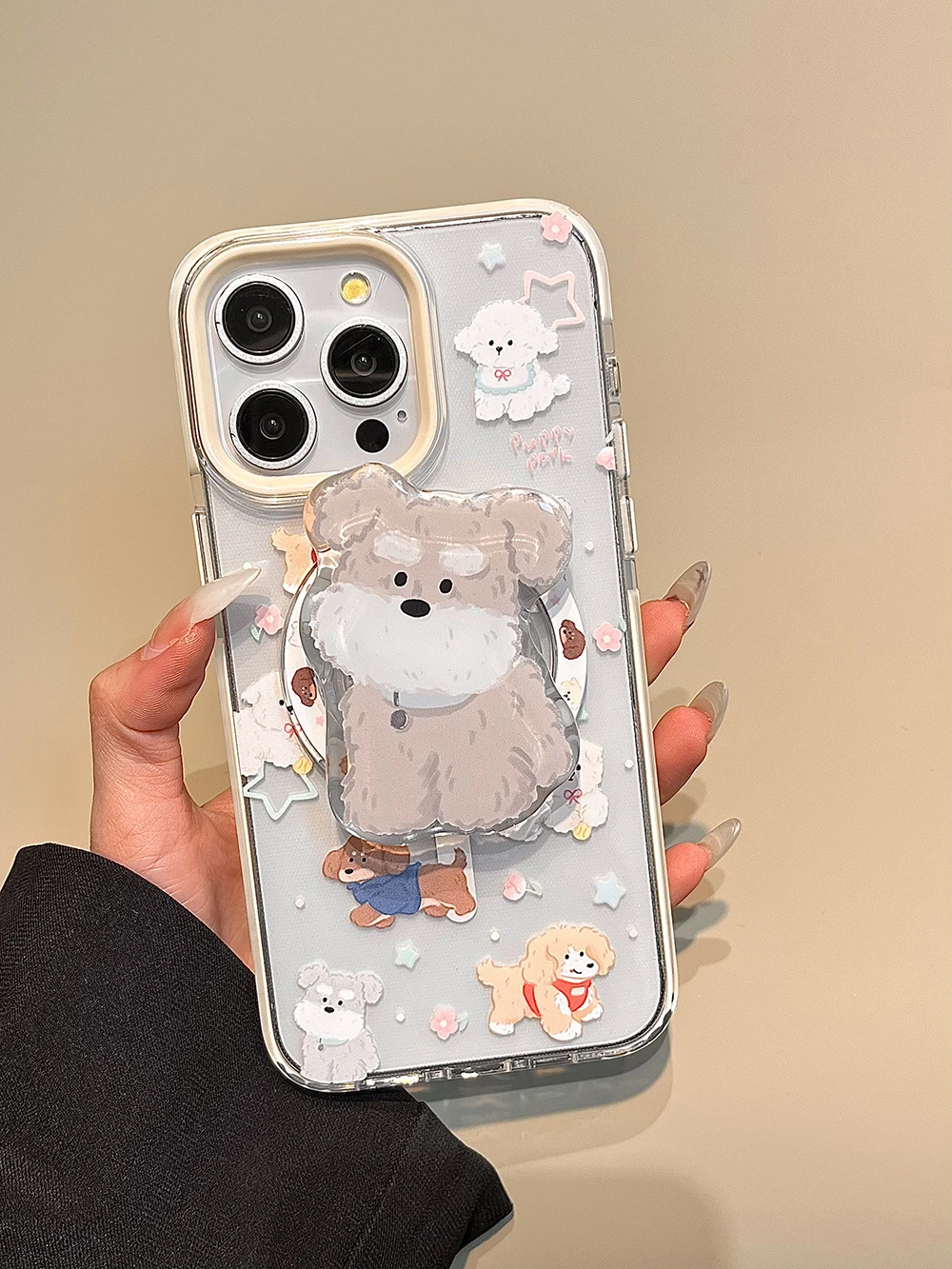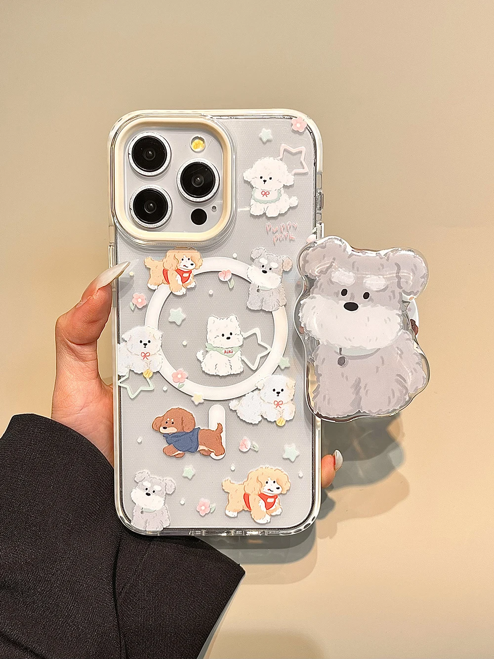 Fundas de teléfono con diseño de animales y cachorros de dibujos animados tok con soporte magnético bonito de Corea para IPhone 16 15 14 13 Pro Max Funda trasera suave para perro encantador