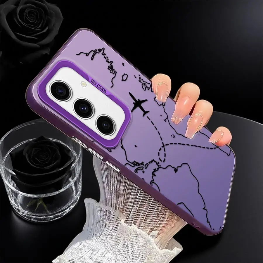 Línea de avión mapa topográfico funda trasera de teléfono para Samsung Galaxy A53 A24 A26 A73 A33 A34 A23 A32 A36 A22 A52 A25