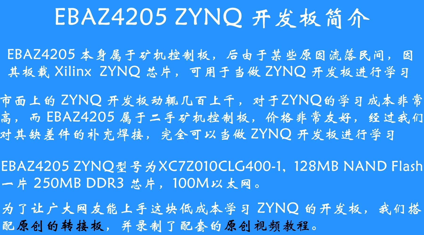 Línea de código abierto EBAZ4205 placa adaptadora Xilinx ZYNQ 7010 suite de aprendizaje
