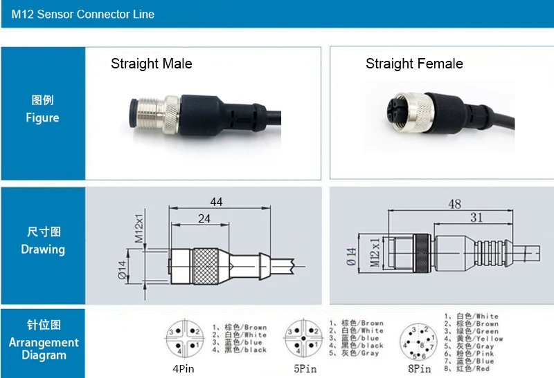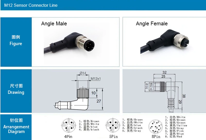 Comprar Línea de conector de Sensor M12, enchufe impermeable, macho, hembra, ángulo recto, 4, 5, 8 pines + 2m, línea de PVC