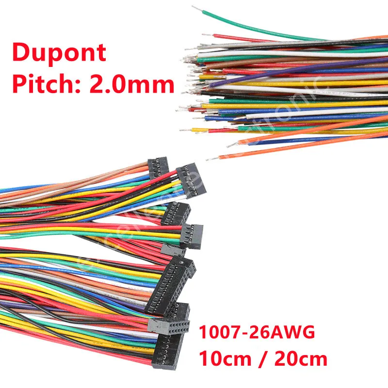 Comprar Línea de conexión de Terminal 5 piezas DuPont de 2,0mm, cable electrónico de un solo extremo 4p-16p, 10cm/20cm, 26AWG, carcasa de goma de doble fila