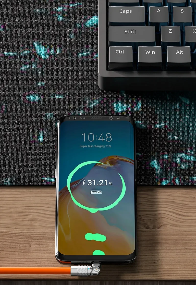 Cable de 100 cm,solo hace carga rápida, más no llega a los 120w